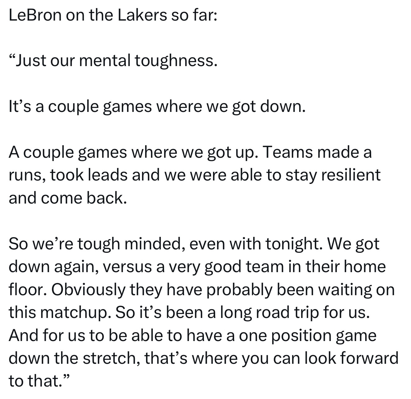 勒布朗谈湖人队至今的表现: