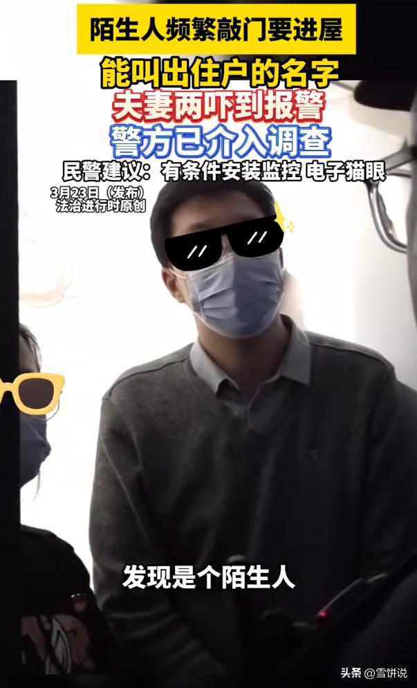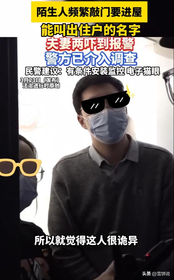 细思极恐!一对夫妻晚上在家休息,突然门口有人敲门,两人并不认识对方,但对方却能叫出他们的名字,还提出要进屋看看,一连几次后夫妻俩选择报警,不少网友也是纷纷猜测对方的目的 一开始,俩人在屋里听见敲门声,从猫眼看出去,不认识。正常反应嘛,不认识就不开门。可门外那男的没走,反而开始喊男主人的名字,还说了点夫妻俩一些信息 这下俩人有点懵了。这人谁啊?怎么啥都知道? 犹豫了一下,他们把门打开了。可面对面一看,确实不认识。那就请走吧,可这人就是赖着不走。最后夫妻俩说再不走就报警了,这人才磨磨蹭蹭离开 人走了,事儿没完。夫妻俩越想越不对劲,心里发毛,最后还是报了警 有网友认为:一些老小区,隔三差五就能碰上。有的借口查电表查水表,有的说是做回访,还有的直接推销东西,门一开就跟你套近乎,就是各种路子想混进屋 也有网友表示:能叫出名字,还知道家里情况,会不会是丈夫在外面有什么交集,人家找上门来了? 说实话,这种猜测也不是没可能。但从夫妻俩的描述来看,他们反复确认过,确实不认识这个人。如果真是熟人或者有过交集,不至于面对面了还认不出来 从行为上看,这个人被报警吓走的,说明他心里清楚自己在做的事儿不太对。如果真是正经事,大大方方说明来意,被拒绝就走人,没必要赖着不走。
