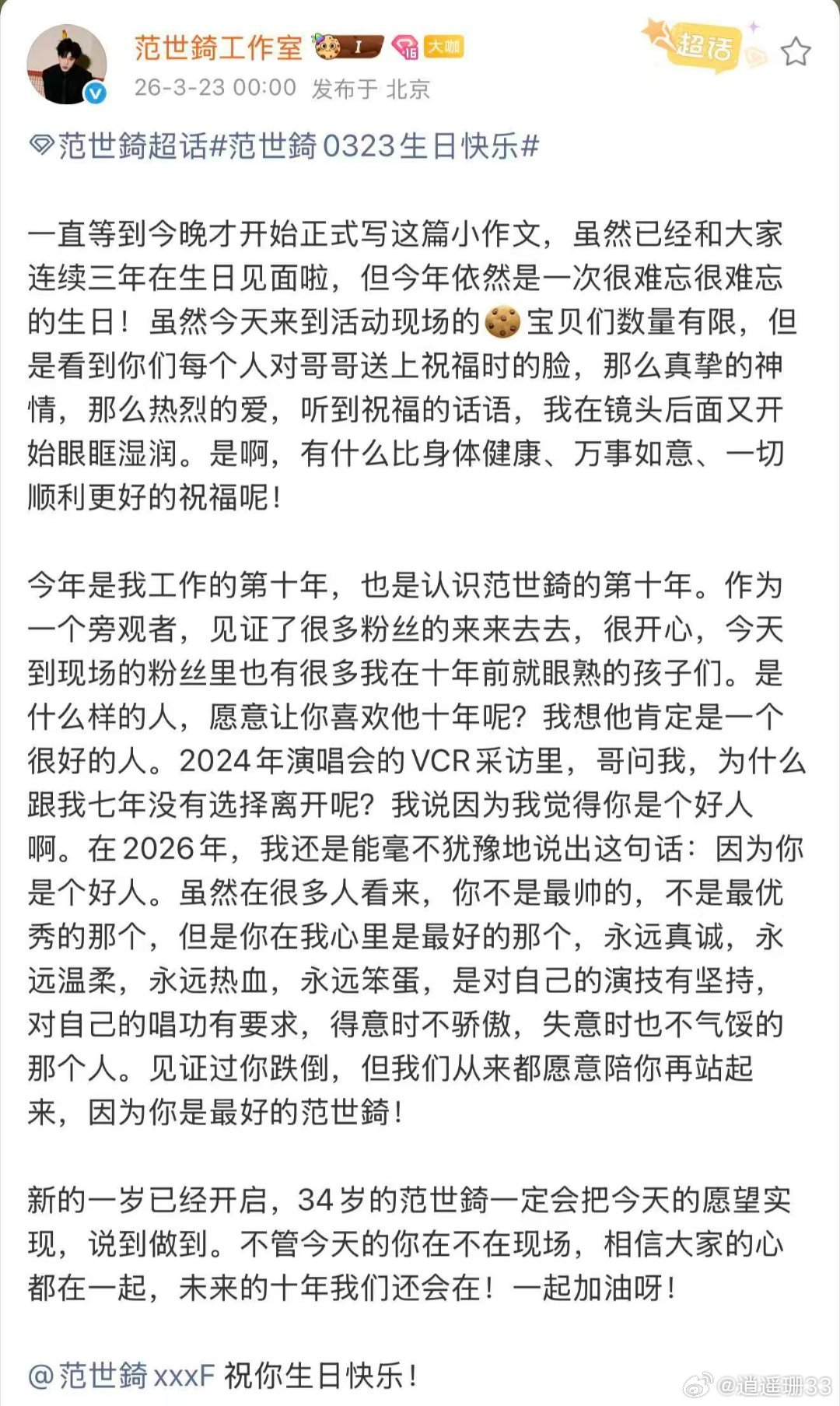 真的别太过分别太离谱,人家过个生日被这群神人硬缠上瞎说八道。工作室已经陪伴10年了,说明这个人值得!