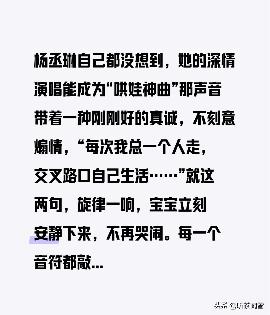 其实,只要用心演绎,不仅画面唯美,她的歌声同样拨动着人的心弦。一位新手姥爷就使用了杨丞琳的《带我走》歌曲前两句作为“哄娃音乐”,显示了其神奇效果。