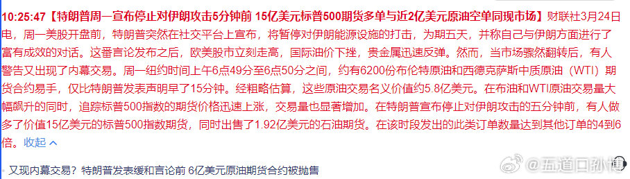 美国股神:特朗普一句话,有人5分钟在股市赚了6000万美元。就在特朗普宣布停止对