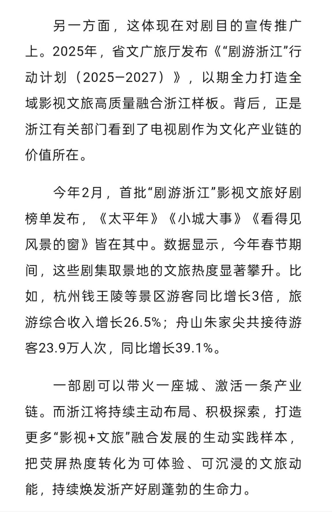 浙江日报报道赵丽颖《小城大事》春节期间,剧集取景地的文旅热度显著攀升,景区游客和收入同比增长,带动了当地旅游业的发展❗️