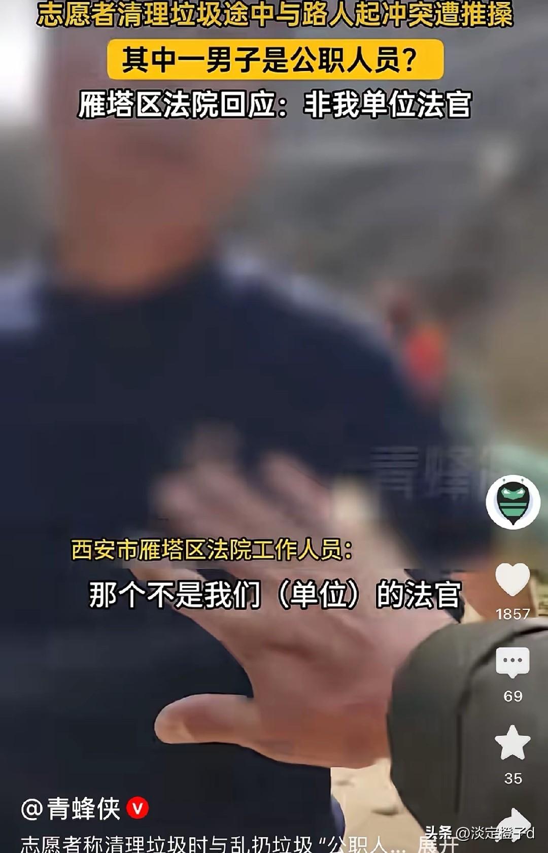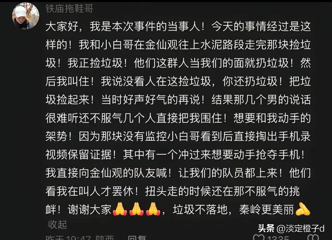 秦岭子午峪扔垃圾事件官方核查结果出炉。 3月21日秦岭子午峪内,游客向志愿者当面丢弃垃圾引发争执,戴眼镜男子态度嘚瑟遭全网声讨,网传该男子隶属政法系统。雁塔法院全面排查后发声,涉事者非本院工作人员。央媒青蜂侠跟进关注此事,爆料视频已被发布者删除。官方后续核实,涉事两人为西安本地普通民众,无公职身份。 新观点是评判公共行为对错应聚焦行为本身,身份标签不能成为定性依据,文明素养是公共场景的核心标尺。小困惑是破除涉事者为政法人员的不实传言,理清事件核心信息,消除公众信息偏差。情绪共鸣是大众对破坏秦岭生态、无视公益的行为心生反感,守护自然环境的心意高度契合。 网络传言像随风飘的碎纸,一查便知真假。涉事者如今在家哆嗦,网友持续扒拉线索关注处置进展。相关部门已对两人批评教育,涉事者公开道歉,乱扔垃圾者被行政处罚。 你觉得这类不文明行为该如何长效约束?来聊聊。
