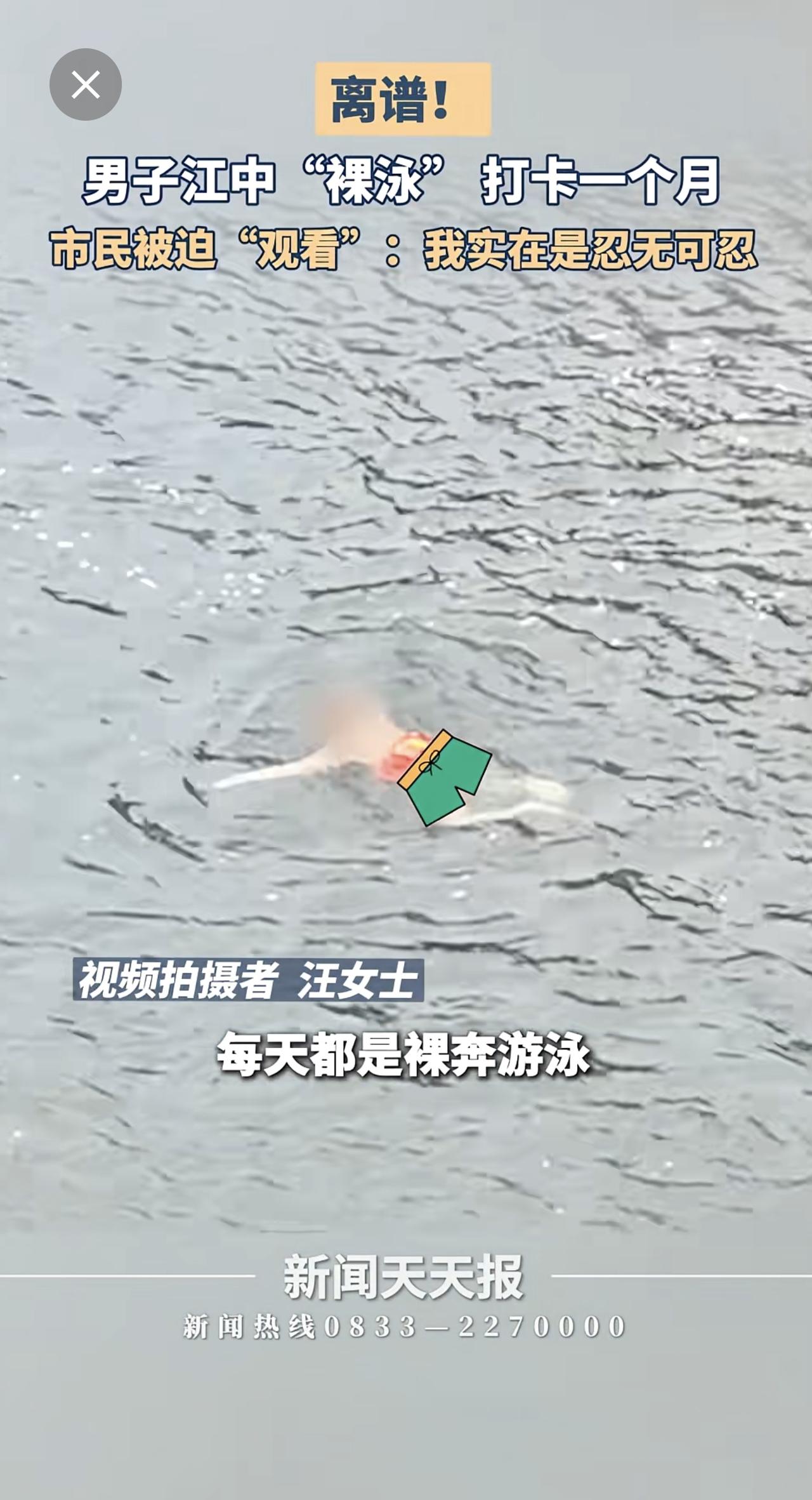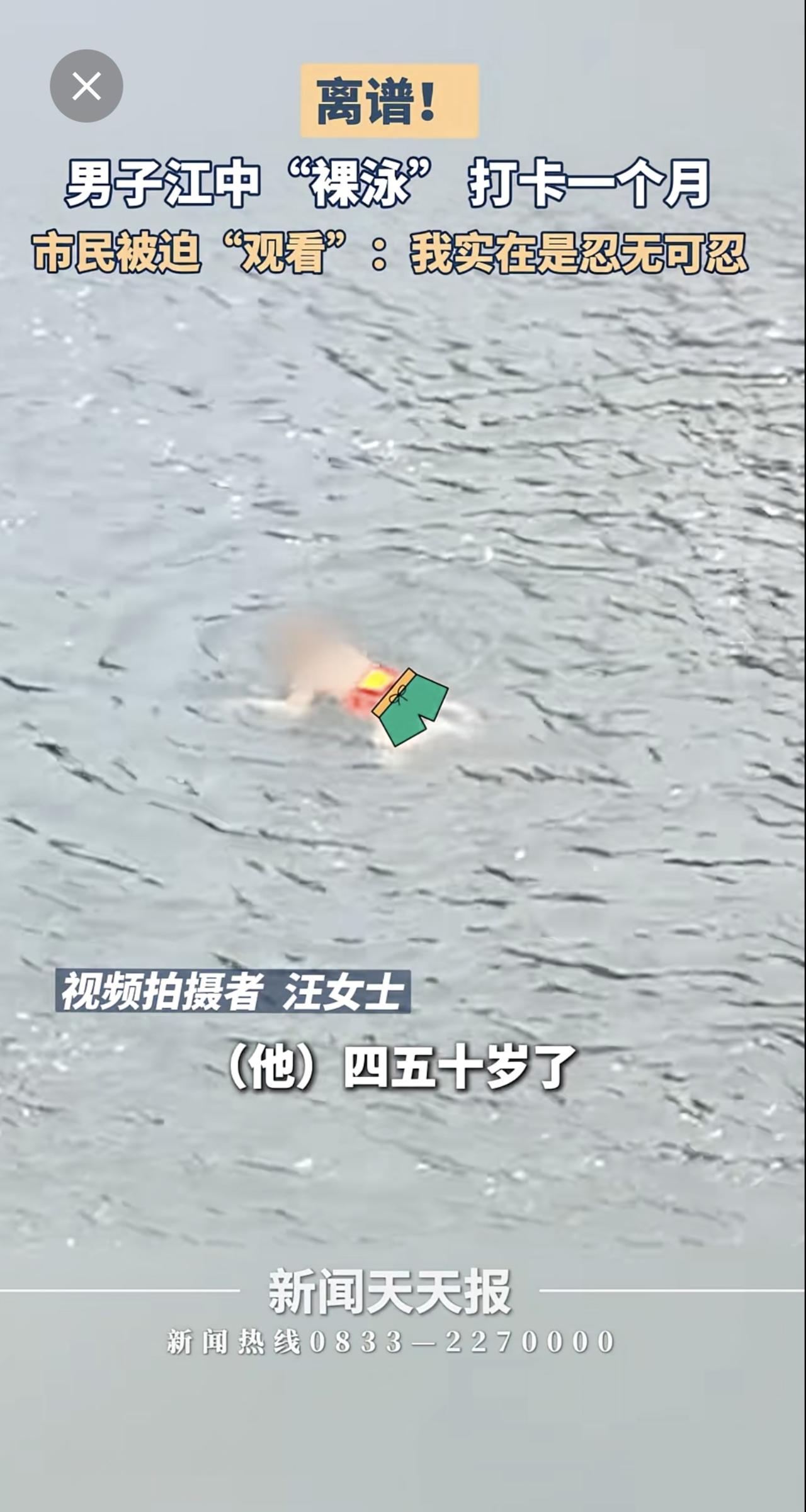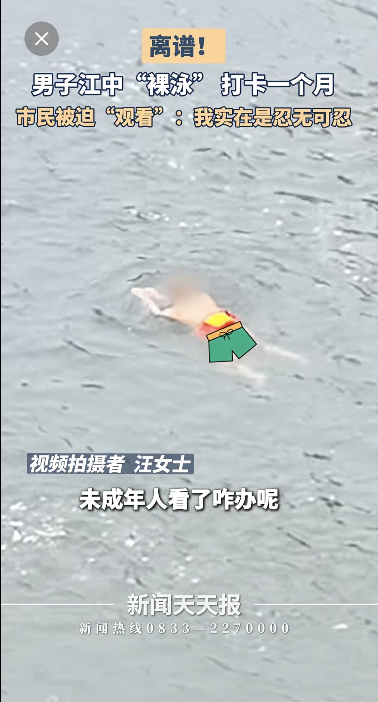 男子江中裸泳一个月,市民:求求你穿条裤衩吧!小编感觉眼睛受伤了。