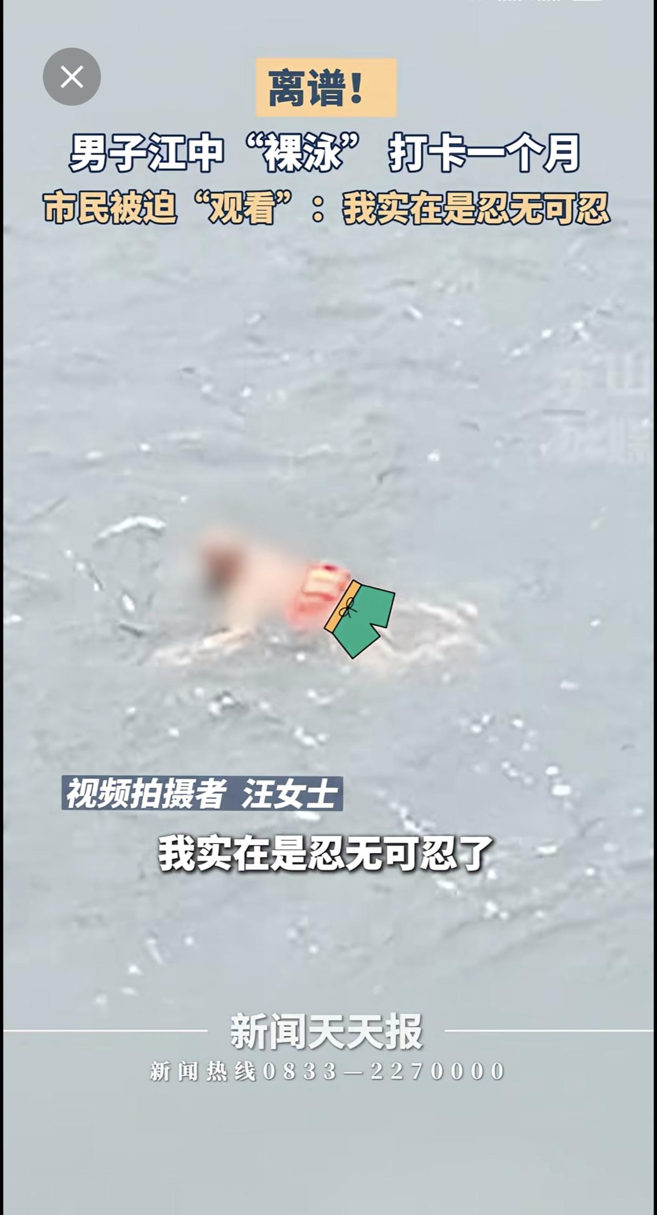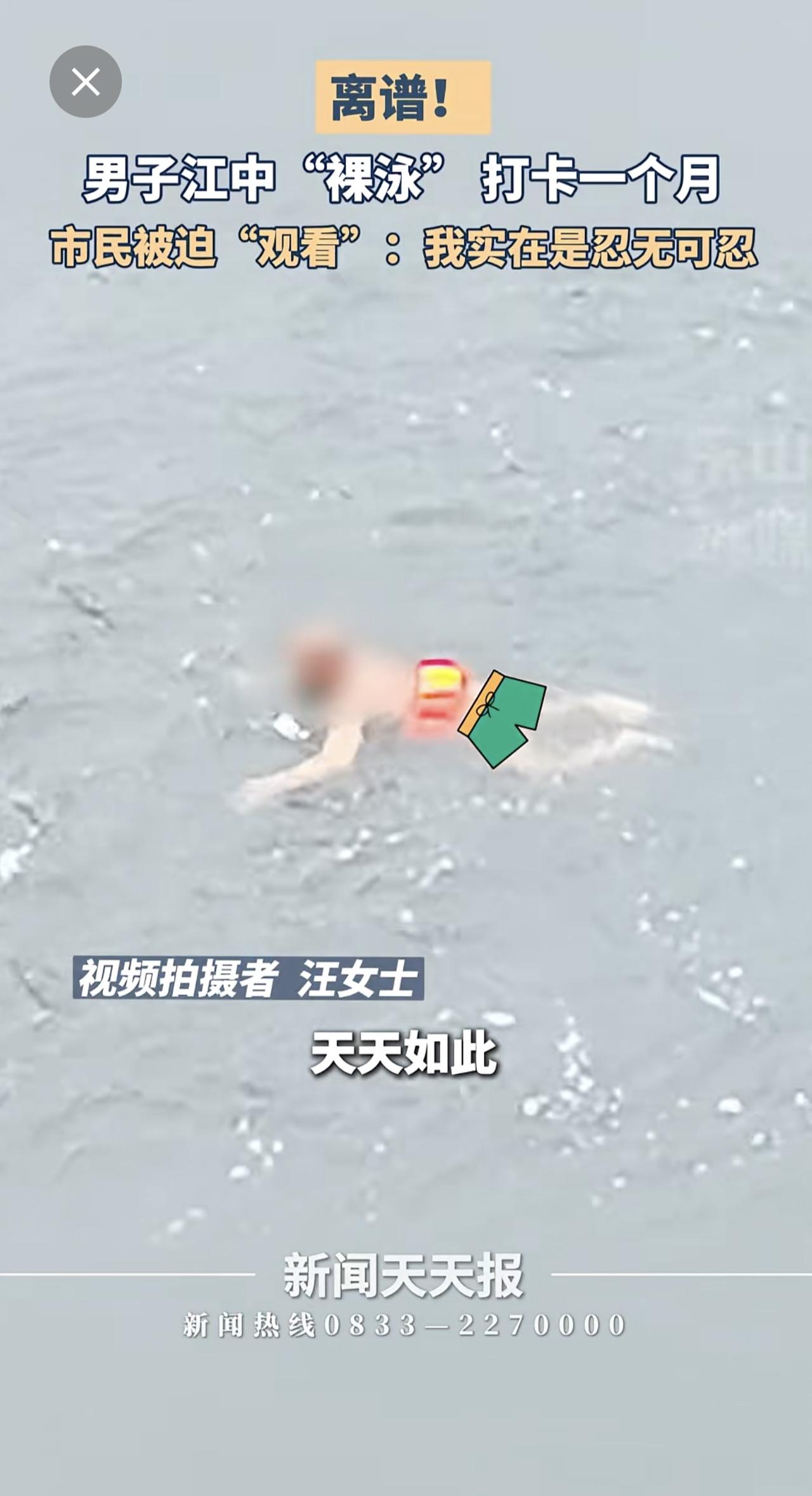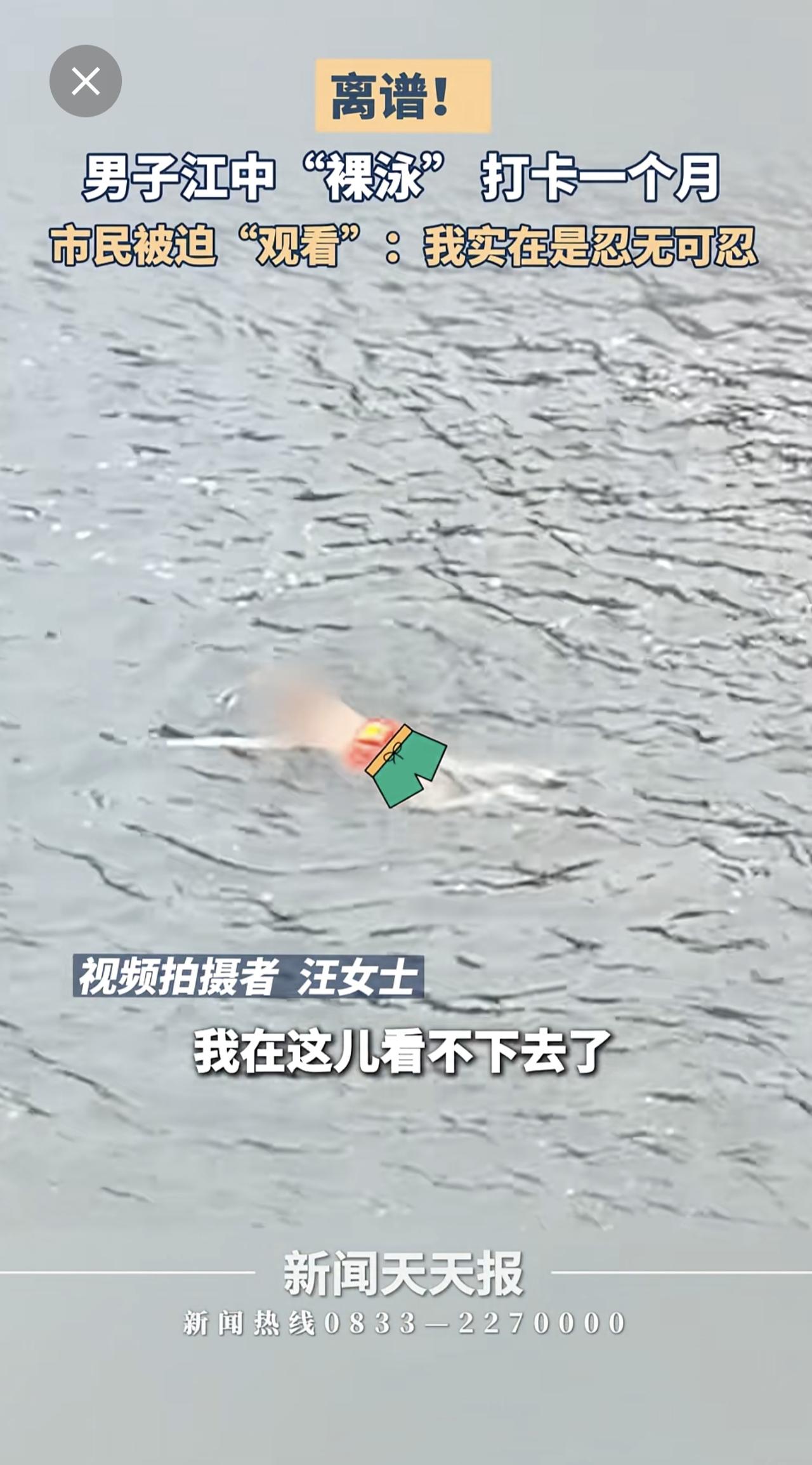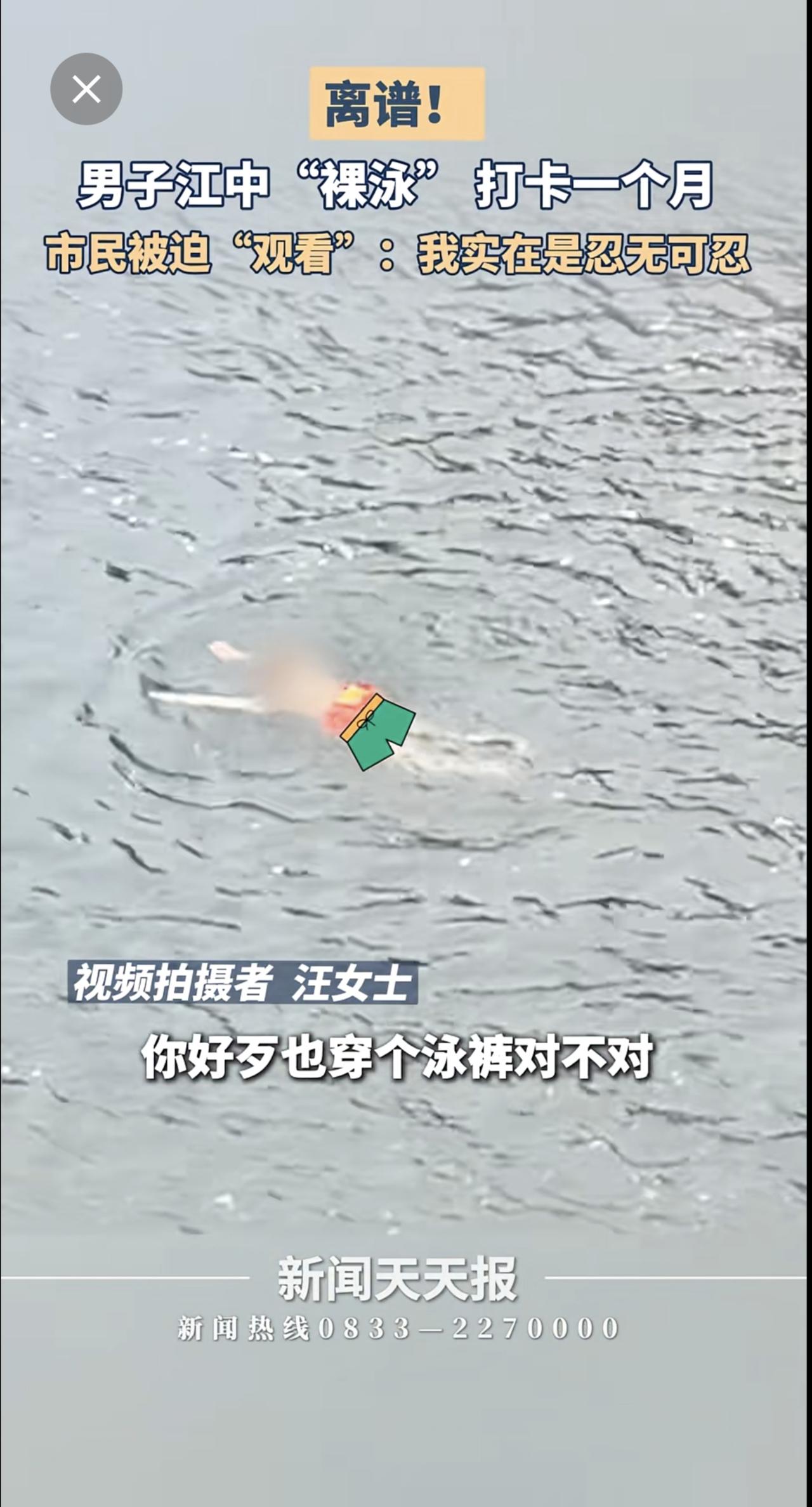 男子江中裸泳一个月,市民:求求你穿条裤衩吧!小编感觉眼睛受伤了。