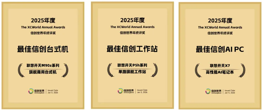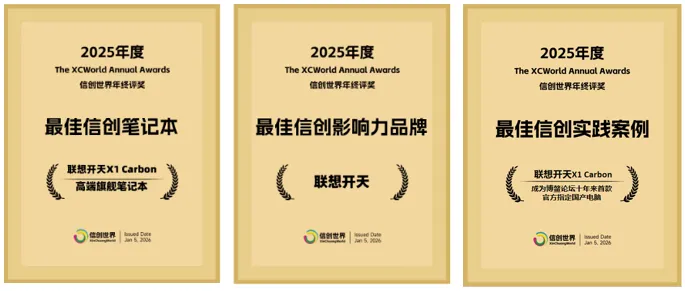 当X1 Carbon在博鳌论坛的聚光灯下代表"中国智造"亮相时,当X7的独立NPU在政企办公中实现智能飞跃时,当P5h工作站在飞机设计所里撑起国产算力脊梁时,联想开天正在书写中国信创产业从"可用"到"好用"、从"替代"到"引领"的壮阔篇章。这份"最大赢家"的荣誉,既是对过去的肯定,更是对未来的期许。
