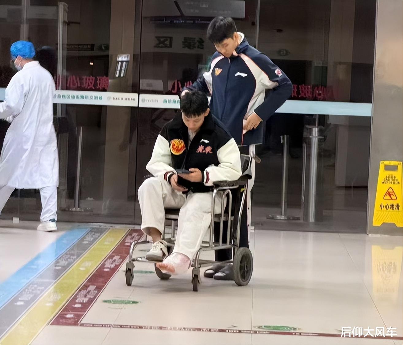 媒体人麦穗丰晒出了一张徐杰从医院拍完片回来的近照,从照片中不难看出,徐杰左脚踝包裹着厚厚的冰袋,无法行动,只能用简陋的轮椅来代步,麦穗丰表示:万幸的是徐杰只是崴脚,遗憾的是崴得似乎有点厉害。