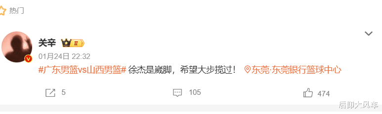 赛后第一时间,关辛及时更新的徐杰伤情的动态,关师傅表示:徐杰是崴脚,希望大步揽过。