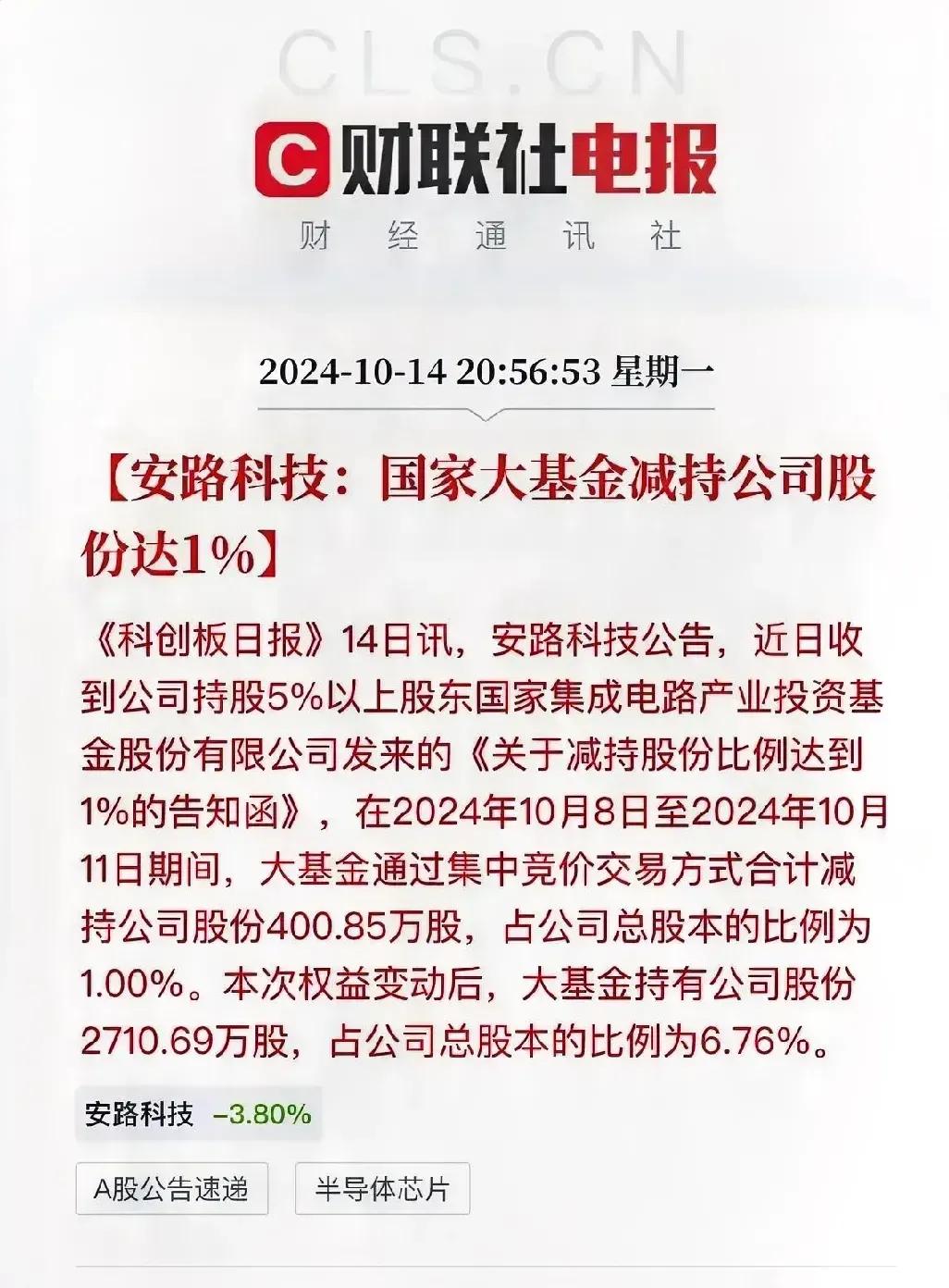 一边爆拉,一边精准减持,这难道不是老鼠仓的操作手法?特意制造出一个牛市假象,原来就是为了减持!10月7日到16日,不到十天的时间,国家大基金已经连续发布了四次减持公告!
