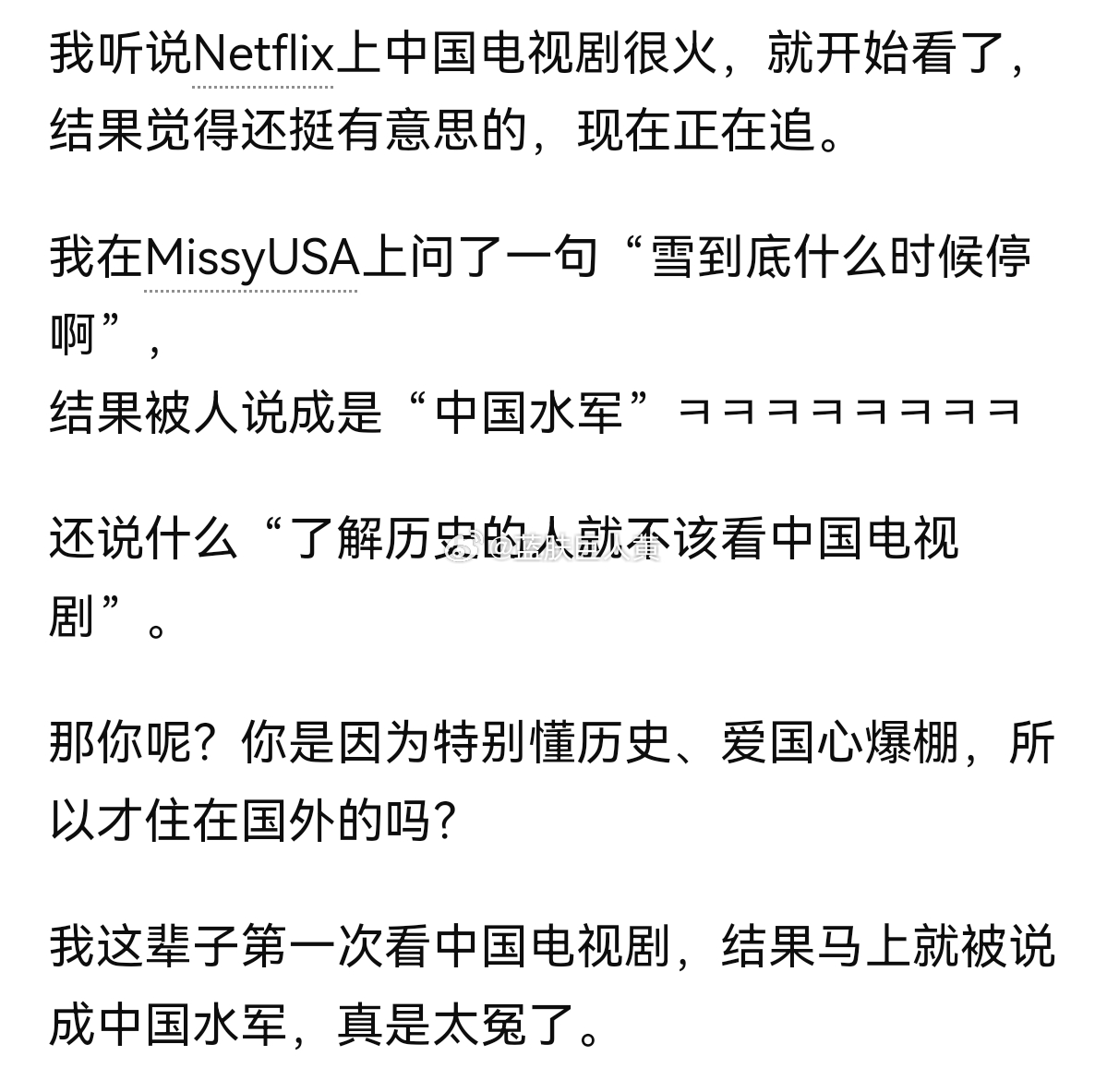 韩女称:“我只是爱看中国电视剧,不代表我喜欢中国”(这台词怎么这么耳熟)