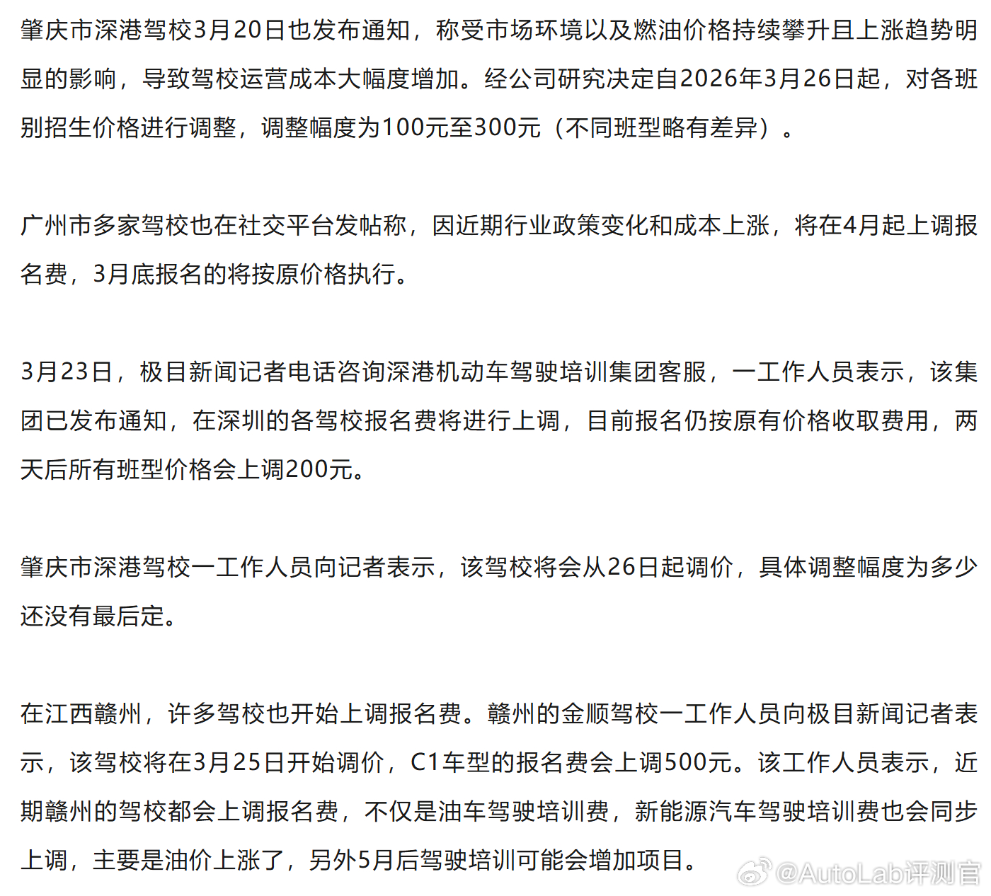 油价上升,没想到驾校费用也上涨了之后用纯电车练车吧