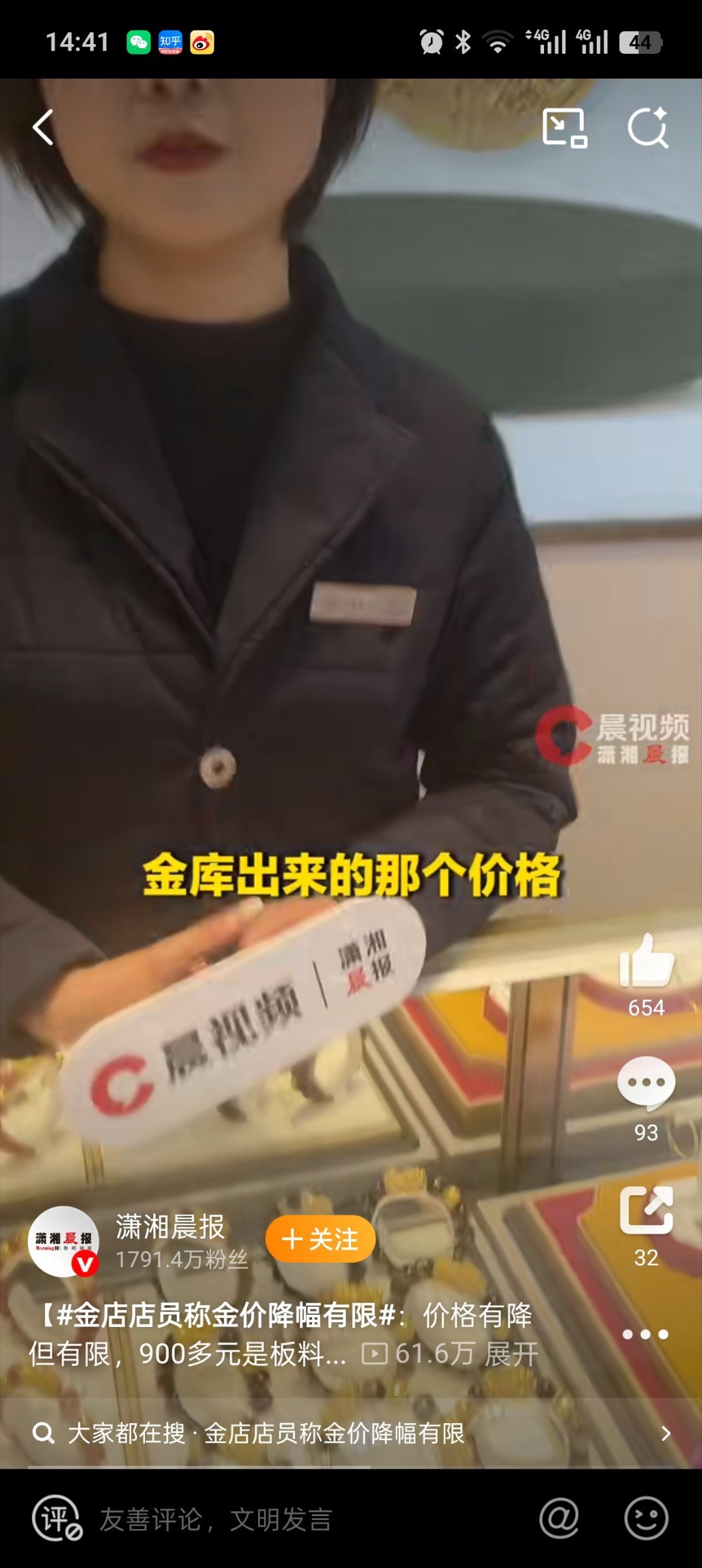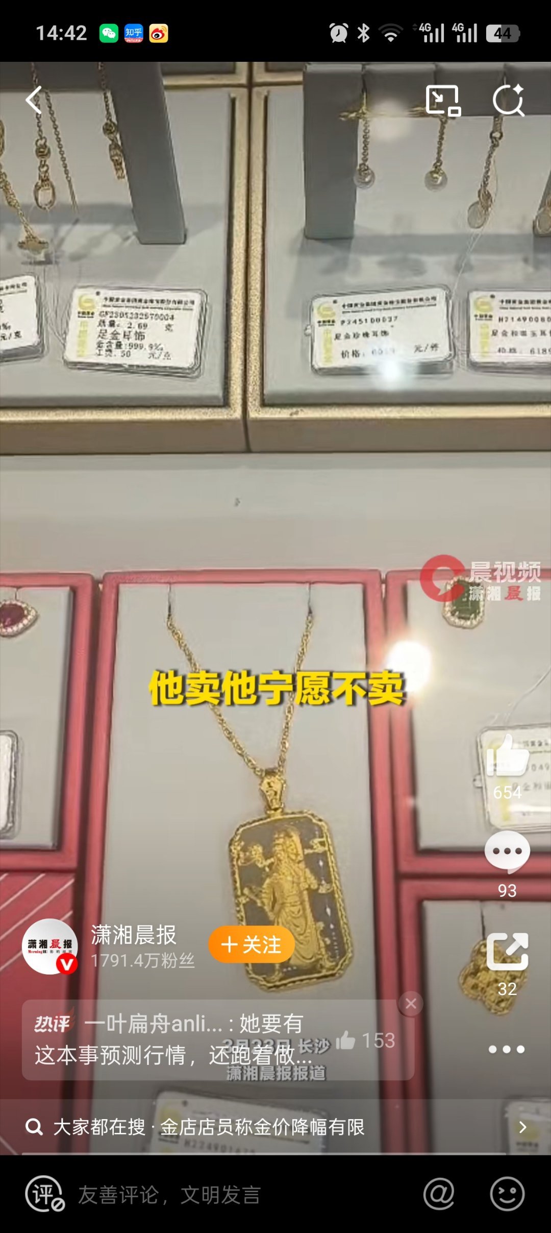 金店店员称按九百多的价格宁愿不卖就是这些老板把市场搞乱了,涨的时候见风涨!一有风