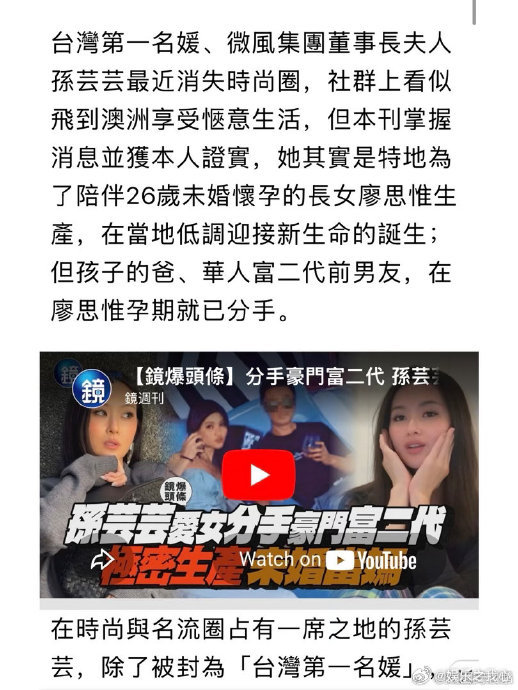 曝孙芸芸女儿未婚生子最近娱乐圈又爆大瓜啦!孙芸芸女儿未婚生子的消息瞬间在网络上炸开了锅,这一事件就像一颗投入平静湖面的巨石,激起了层层涟漪,引发了大家的广泛关注和热烈讨论。孙芸芸在娱乐圈那可是响当当的人物,她的一举一动都备受瞩目,这次她女儿的事情更是成为了舆论的焦点。未婚生子,这个话题本身就自带热度,在传统观念里,结婚生子似乎是一个固定的流程,而现在孙芸芸女儿打破了这个常规,直接未婚生子,这就好比在大家习以为常的生活里突然出现了一个新的变量。从社会层面来看,现在社会越来越多元化,人们的观念也在不断地发生变化。据相关调查显示,近年来,未婚生育的现象有逐渐上升的趋势。这反映出人们对于婚姻和生育的态度更加开放和包容。一些专家也指出,现代社会更加注重个人的选择和自由,只要能够承担起相应的责任,未婚生育也并非不可接受。然而,传统观念的影响依然存在。很多人还是会对未婚生子的行为投以异样的眼光,觉得这不符合社会的主流价值观。就像在一些老一辈人的观念里,结婚是生育的前提,没有结婚就生孩子是一件很不光彩的事情。这种观念的冲突在孙芸芸女儿未婚生子事件中体现得淋漓尽致。对于当事人来说,未婚生子可能面临着更多的压力和挑战。比如经济上的负担,要独自抚养孩子需要足够的经济支持;还有来自社会舆论的压力,可能会遭受一些不必要的指指点点。但同时,这也意味着她有更多的自由去选择自己想要的生活方式,不用被婚姻的条条框框所束缚。孙芸芸女儿未婚生子这一事件,就像一面镜子,反映出了社会观念的变迁和碰撞。它让我们看到了社会的进步,人们对于不同生活方式的包容度在提高;同时也让我们意识到传统观念的根深蒂固。在这个多元化的时代,我们应该以更加开放和包容的心态去看待这些现象,尊重每个人的选择。毕竟,生活是自己的,只要能够为自己的选择负责,又何必在意他人的眼光呢?不知道大家对于孙芸芸女儿未婚生子这件事有什么看法呢?欢迎在评论区留言分享哦!