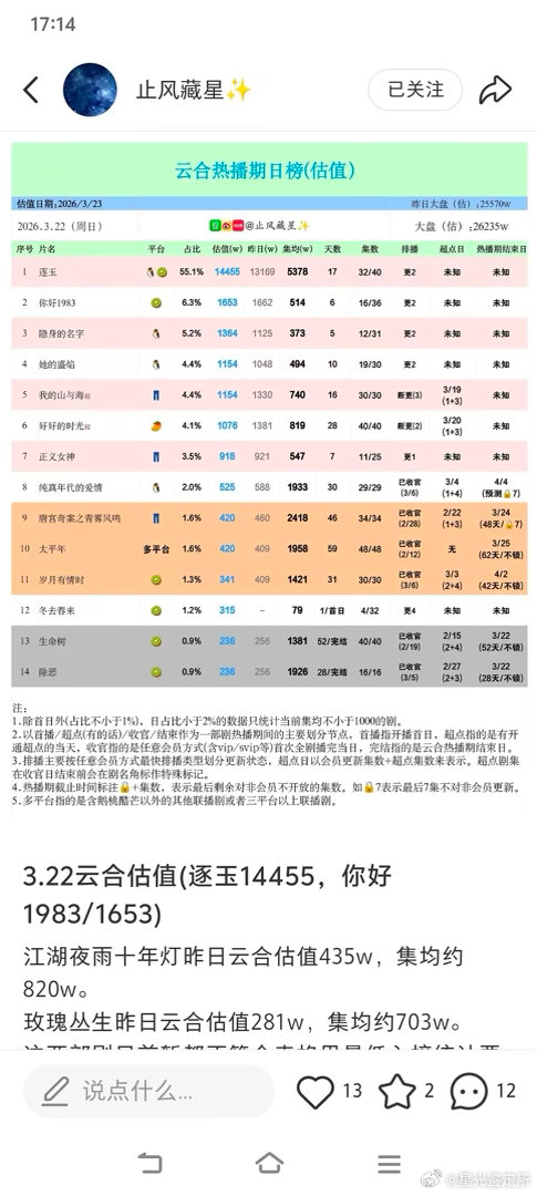 来看看,逐玉居然已经超过庆余年了,什么水平?
