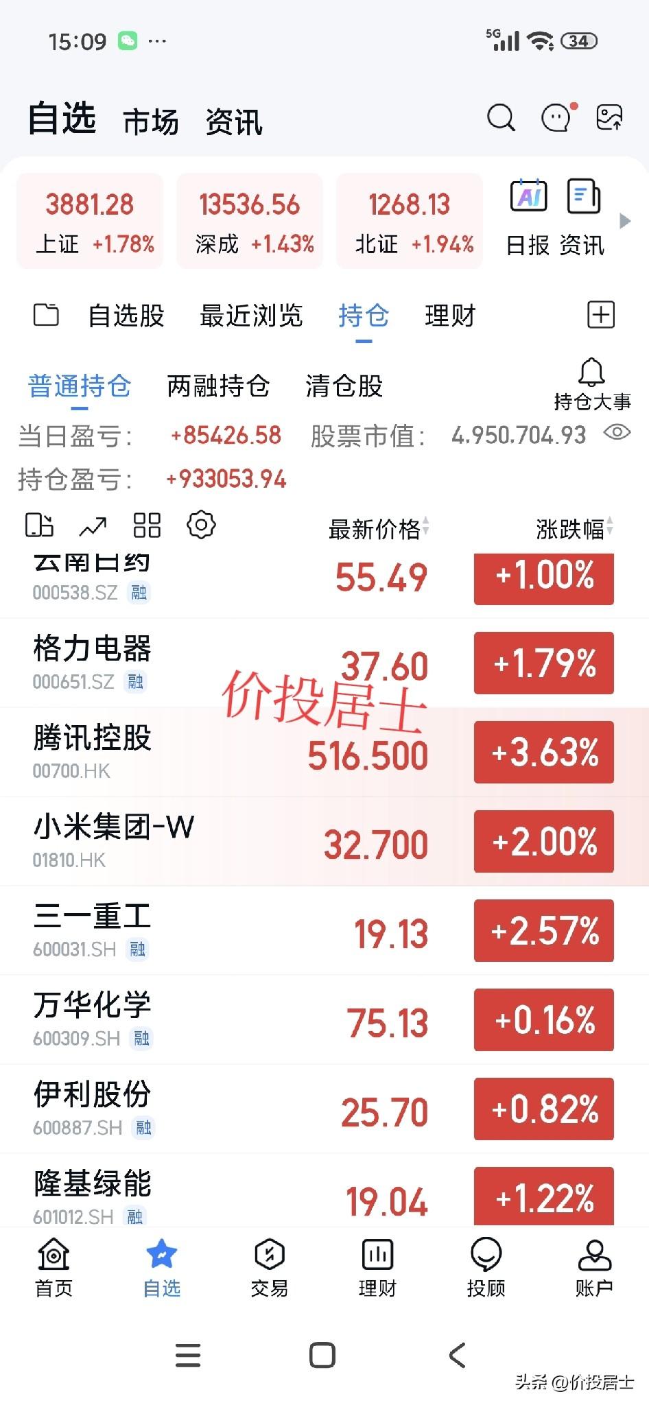 这会A股收盘了,其实个人想等着今天再砸盘,然后补点仓呢[笑哭]虽然我也觉得这样的连续杀跌没有持续性,但实话说反弹的速度超过我的意料了!总之,今天要恭喜大家,昨天被牵走一头牛,今天起码能还回来一只鸡吧[笑哭] 言归正传,越是这样的慢涨急跌越不可能是什么长期顶部,相反,天天阳光普涨集体暴涨,才是牛末的特征之一。而且我们这次的股市有其特殊的使命归宿,那就是要承担大部分原来房地产的资金蓄水池作用。 看今天这个情形,开始要步入新的一轮慢涨急跌行情了,急跌过去了,自然又要开始慢涨了。 这个阳春三月却来了个倒春寒[笑哭]挺让人意外的,但这就是股市,这就是资本市场的不可预测性[祈祷]