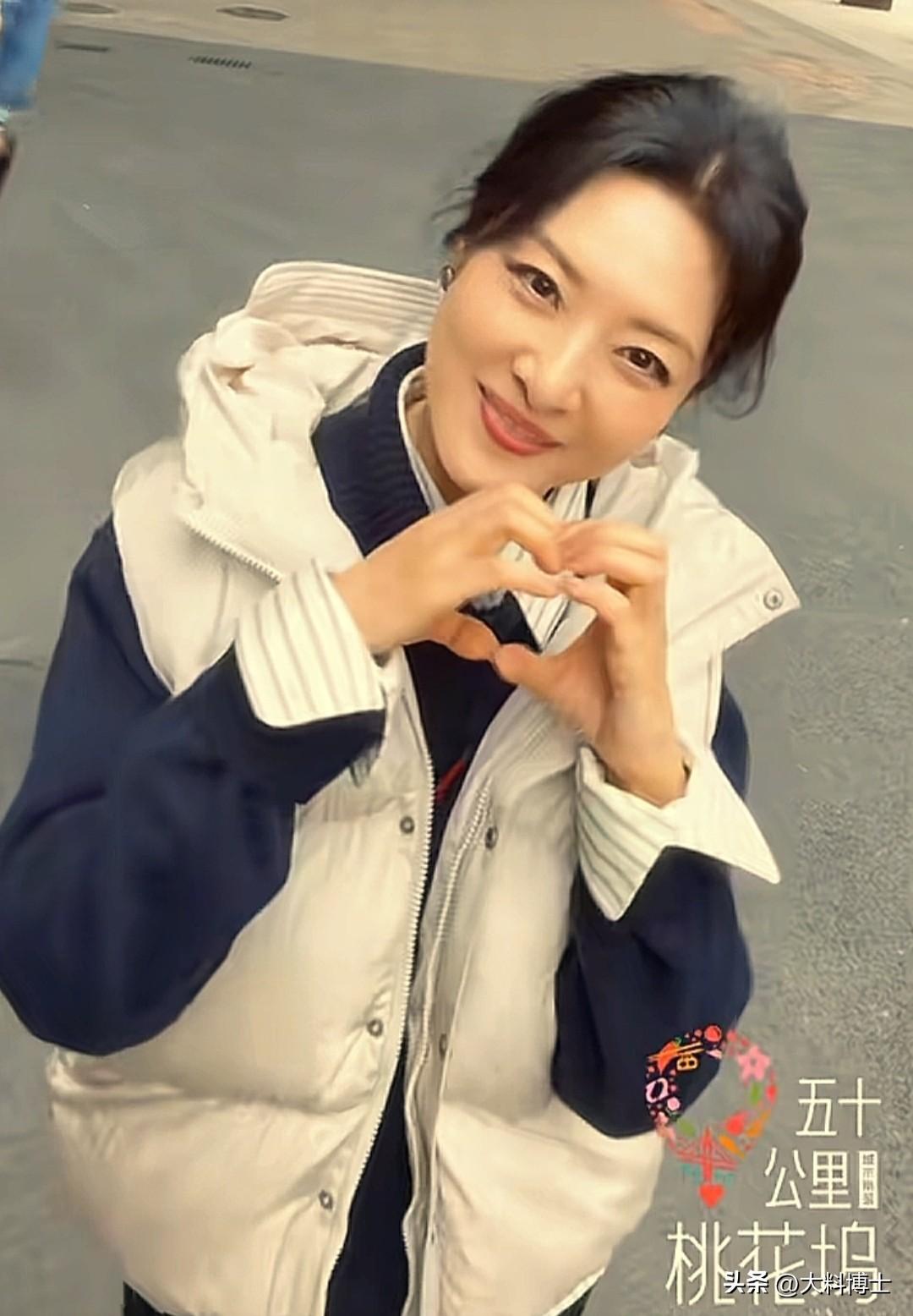 画面中,周涛身着白色羽绒马甲搭配藏青上衣,比心时笑容温婉,状态松弛自然;袁咏仪则亲密挽住周涛,笑容明媚,两人同框毫无违和感。