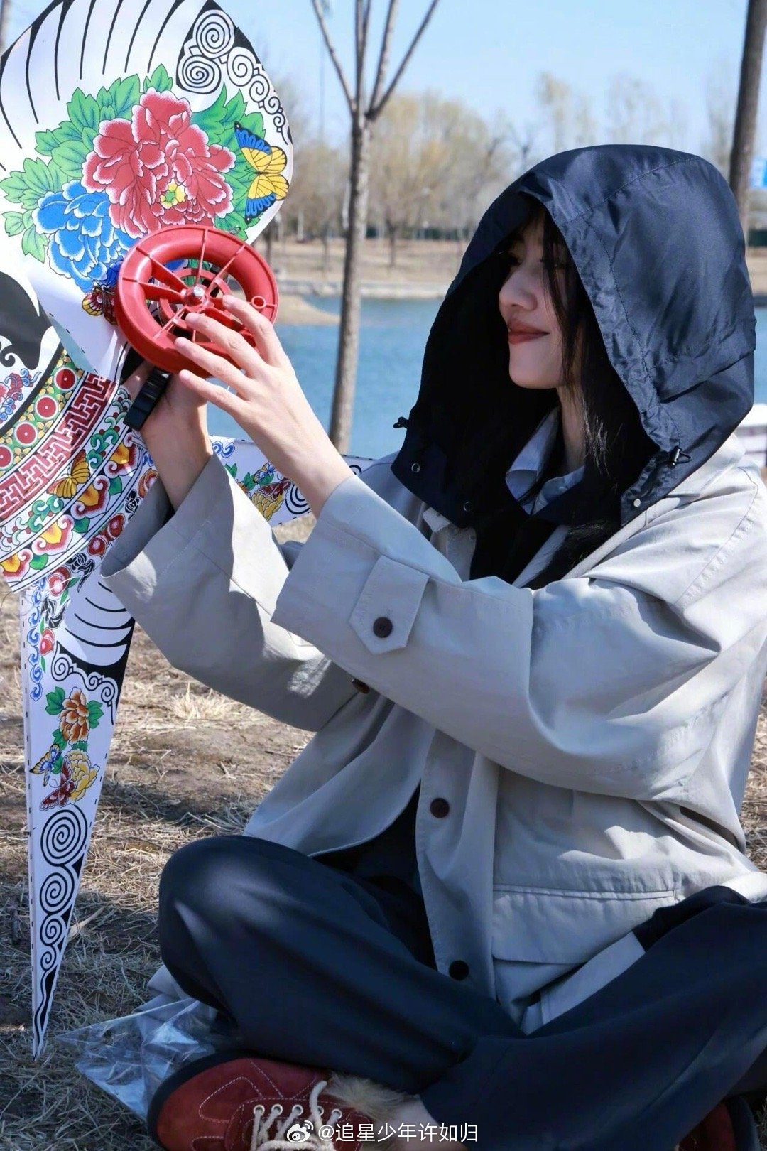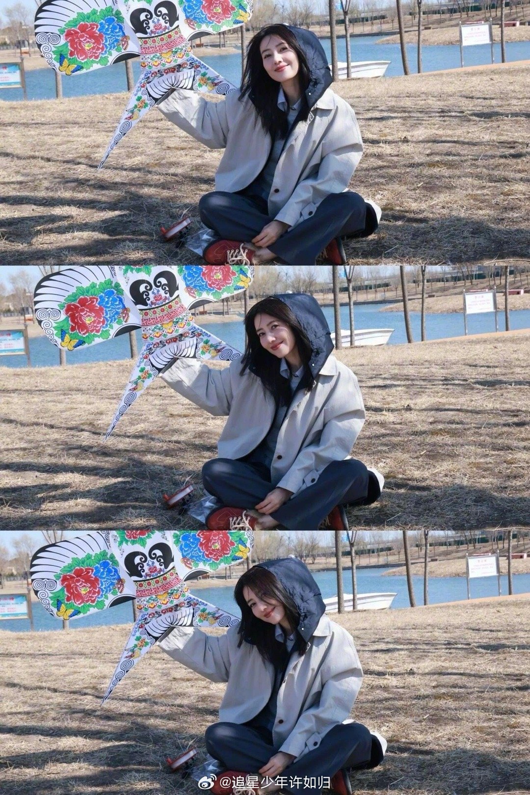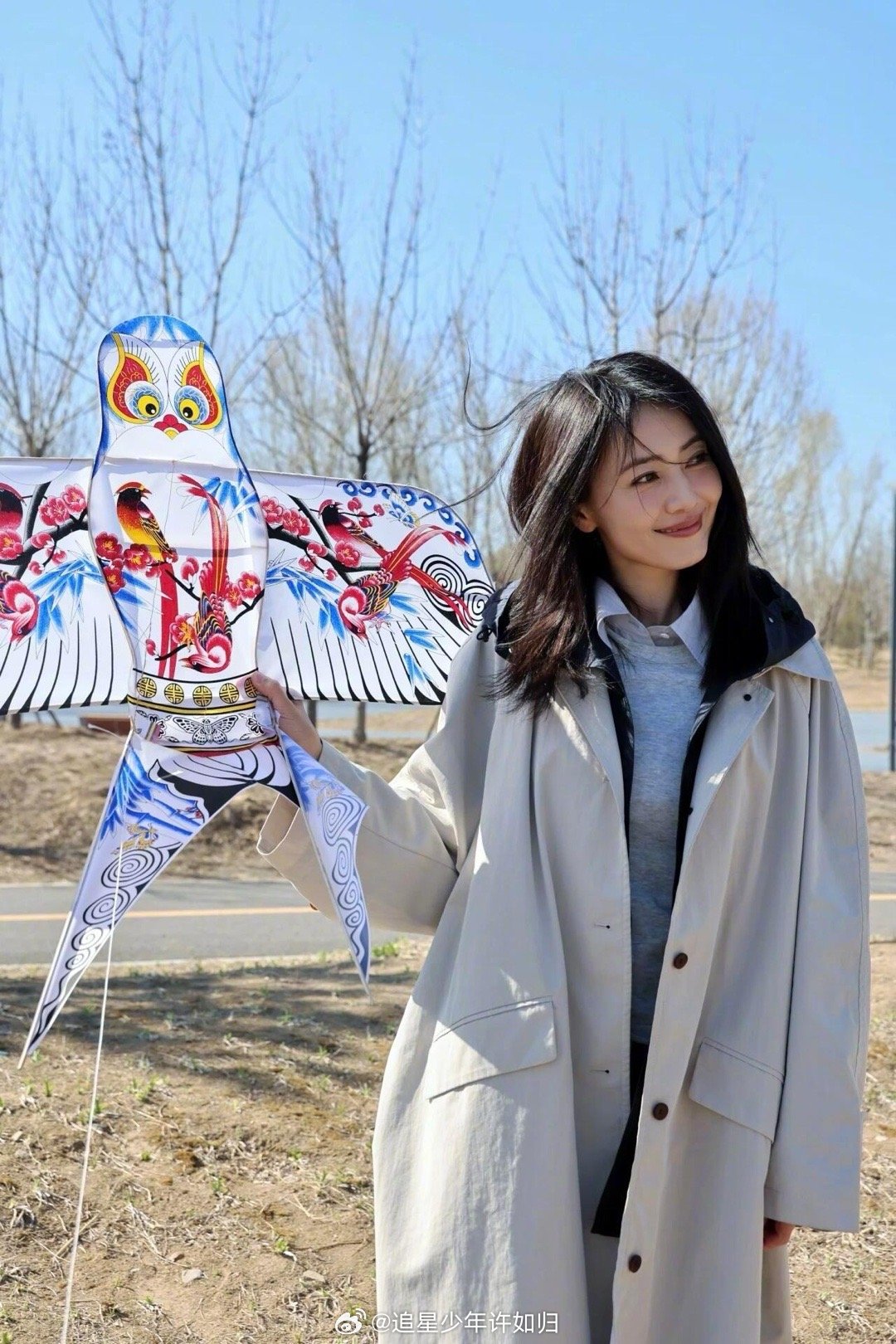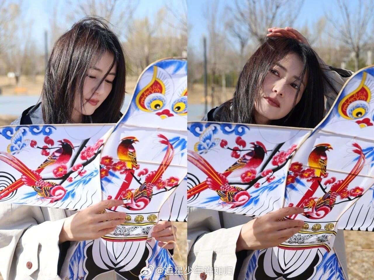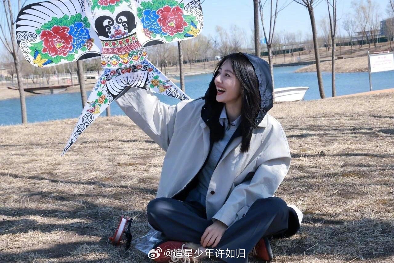 高圆圆来山东也爱吃大饼卷洋葱高圆圆放风筝隐藏高手 风吹得头发乱飞,她笑得比太阳还