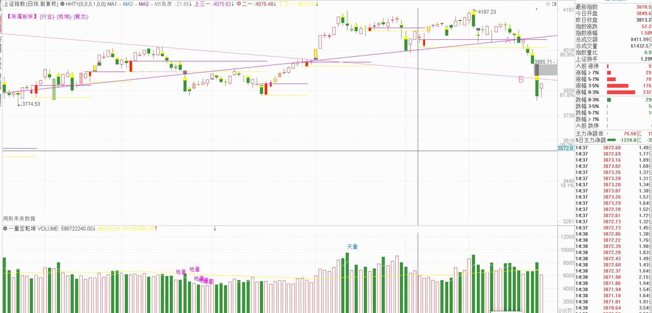 明天3月25日(星期三)大盘走势前瞻: 今天,A股大盘走出了一波跌宕起伏的行情,跳空高开于3849点后,全天围绕人线与零轴反复穿越,多空双方展开激烈博弈。最终,大盘收回到1217元帅柱实底之上,且极阴次阳站稳左侧大阴线二一位3860点,为3月25日的走势埋下了关键伏笔。 从量学视角来看,当前行情正处于关键的确认节点。昨日大盘跌破1217元帅柱后,今日迅速收复失地,这种“破而后立”的走势,彰显了市场内在的韧性。而极阴次阳站上左侧大阴线二一位,更是量学中判断行情转强的重要信号。不过,根据量学“三日定性原则”,今日的企稳能否转化为持续上涨的动力,还需3月25日的行情进一步确认。若明日大盘能站稳3860点之上,那么极阴次阳的有效性将得到验证,新一轮上涨行情有望开启;反之,若再次跌破关键点位,则市场可能重回震荡格局。 对于3月25日的盘面,我们可以通过盘前三线来明确操作边界。上线3905点是短期压力位,若大盘能突破此点位,将打开向上空间,可积极加仓;中线3865点是多空博弈的核心区域,若能站稳该点位,说明市场企稳信号进一步强化;下线3807点则是重要支撑位,一旦跌破,需警惕回调风险。 在板块选择上,主力资金的动向为我们指明了方向。上周以来,主力资金不断试盘,先后拉动算力、5G、电力能源、光伏等板块,近期更是聚焦电力能源与军工。这种轮动背后,是主力资金对市场主线的深度挖掘。当前,电力能源板块受益于政策支持与需求增长,具备较强的基本面支撑;军工板块则在国际形势变化与国产化加速的背景下,展现出良好的发展前景。投资者应紧跟主力步伐,聚焦这些主线板块,精选优质个股,避免追涨杀跌。 总之,3月25日的大盘走势至关重要,量学信号与主力资金动向为我们提供了清晰的操作指引。投资者需密切关注盘面变化,严格按照盘前三线进行操作,在控制风险的前提下,把握市场机遇。