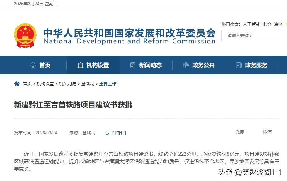 春潮涌动启新程,万众期盼终圆梦!3月24日,国家发展改革委官网传来两大振奋人心的重磅喜讯——《新建南阳至信阳至合肥铁路项目建议书》以及《新建黔江至吉首铁路项目建议书》正式获批! 南信合高铁(南阳 — 信阳 — 合肥)建成后,将一次性结束豫南 8 个县(唐河县、泌阳县、桐柏县、潢川县、罗山、息县、商城、固始)不通高铁的历史,覆盖南阳、驻马店、信阳三市,是大别山革命老区的 “交通翻身线”。 黔吉高铁(重庆黔江 — 湖南吉首)建成后,将一次性结束渝东南、湘西共 4个区县(酉阳县、秀山县、花垣县、保靖县)不通高铁的历史,填补武陵山区高铁空白。