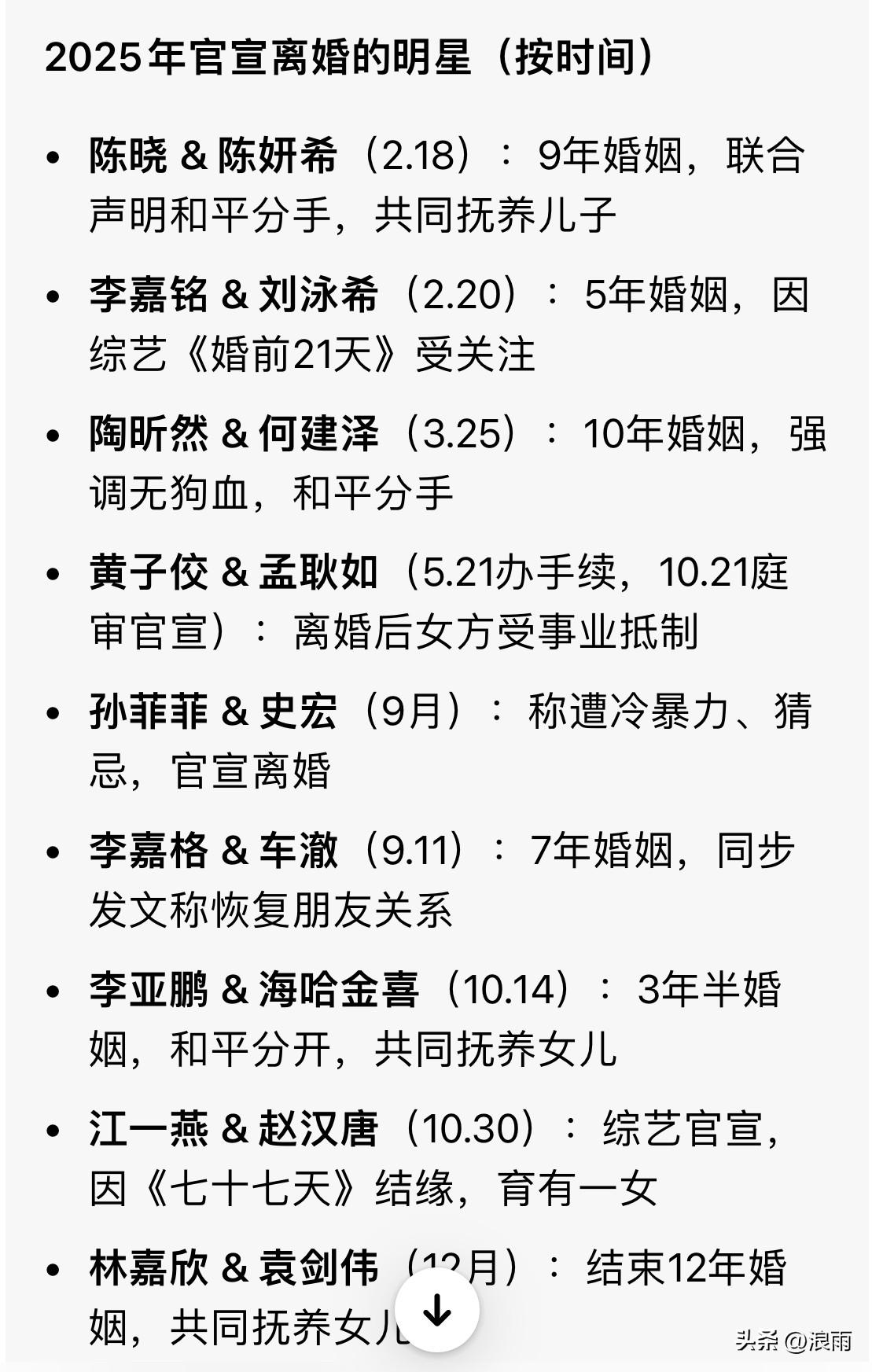 终于明白了,人民网点名批评姚晨,根本不是针对她。 看看去年一共有多少明星官宣离婚就明白了。从2月到12月,几乎全年没消停过。每一次都引发热搜霸榜,舆论狂欢,严重浪费公共资源。 今年,姚晨是第一个官宣离婚的。她这是撞到了枪口上了,如果不拿她“开刀”。今年不知道还有没有其他明星官宣离婚。 现在的年轻人本来结果意愿就不强烈,老是让这类离婚事件霸屏上热搜,起不到好作用不是啥好事,这也是炮轰她的另一个原因吧。