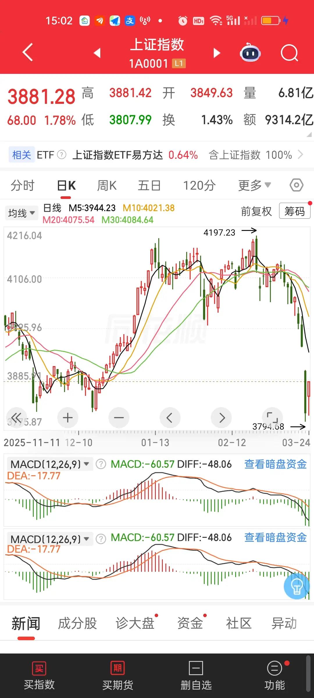 昨天恭喜敢于在低位加仓的勇士。底下264条评论,绝大多数人都在冷嘲热讽,在它们眼里觉得昨天加仓的人是笨蛋。是在接飞刀。而今天打脸的又是谁呢?股市是千变万化的,没有人可以一直准确猜中结果。其实我们每个人都是靠猜,这难道不是股市最大的魅力吗? 虽然大家都是靠猜,但操作的节奏更重要,我难道不明白昨天的低点3794短时间内是必破的吗?我更加清楚现在的问题是虽然指数的下跌空间不大了,但调整的时间还不够。就算从3794到3734也不过60个点的下跌空间。所以向下的调整空间肯定是不大的,但调整时间最少还得一周。