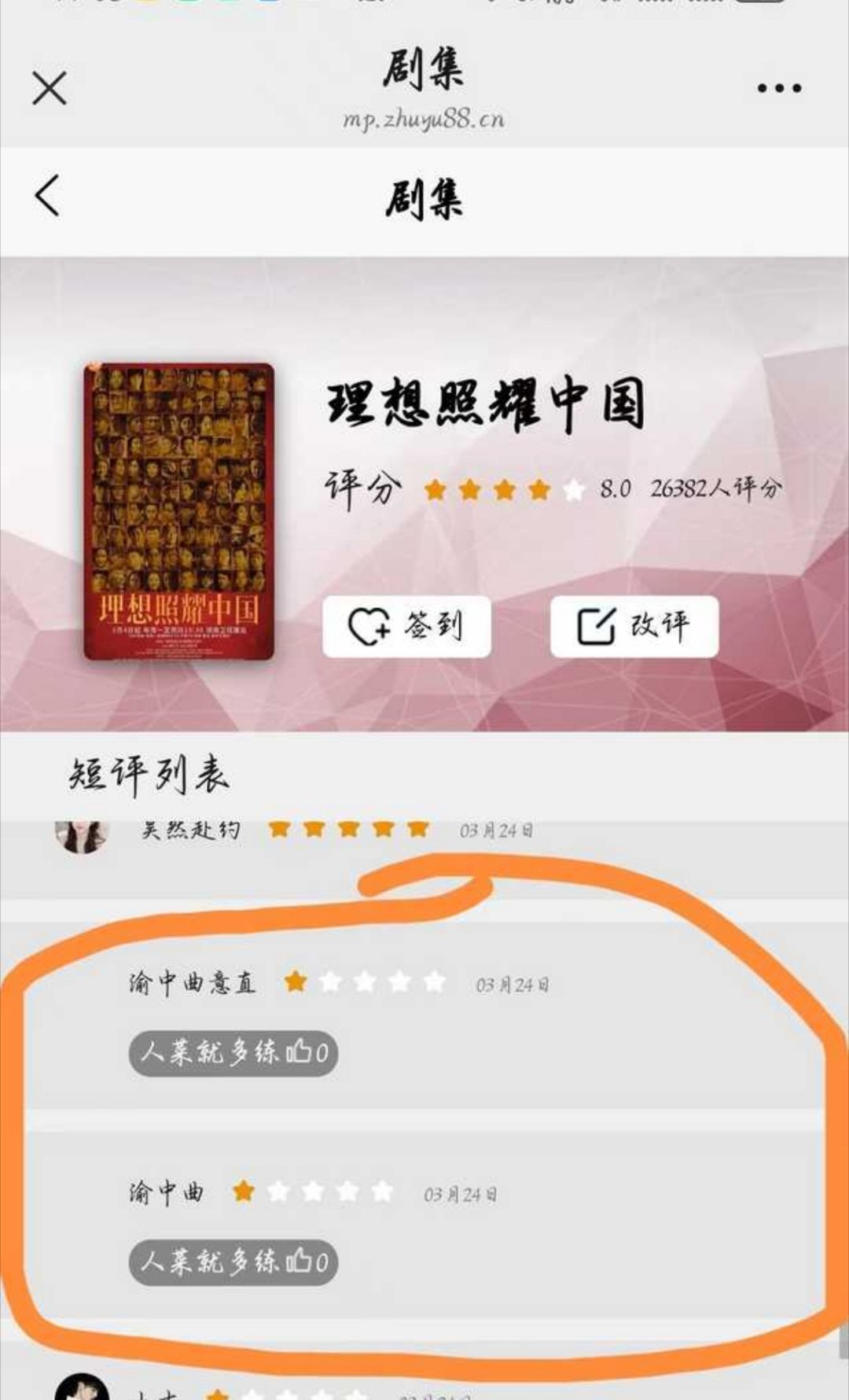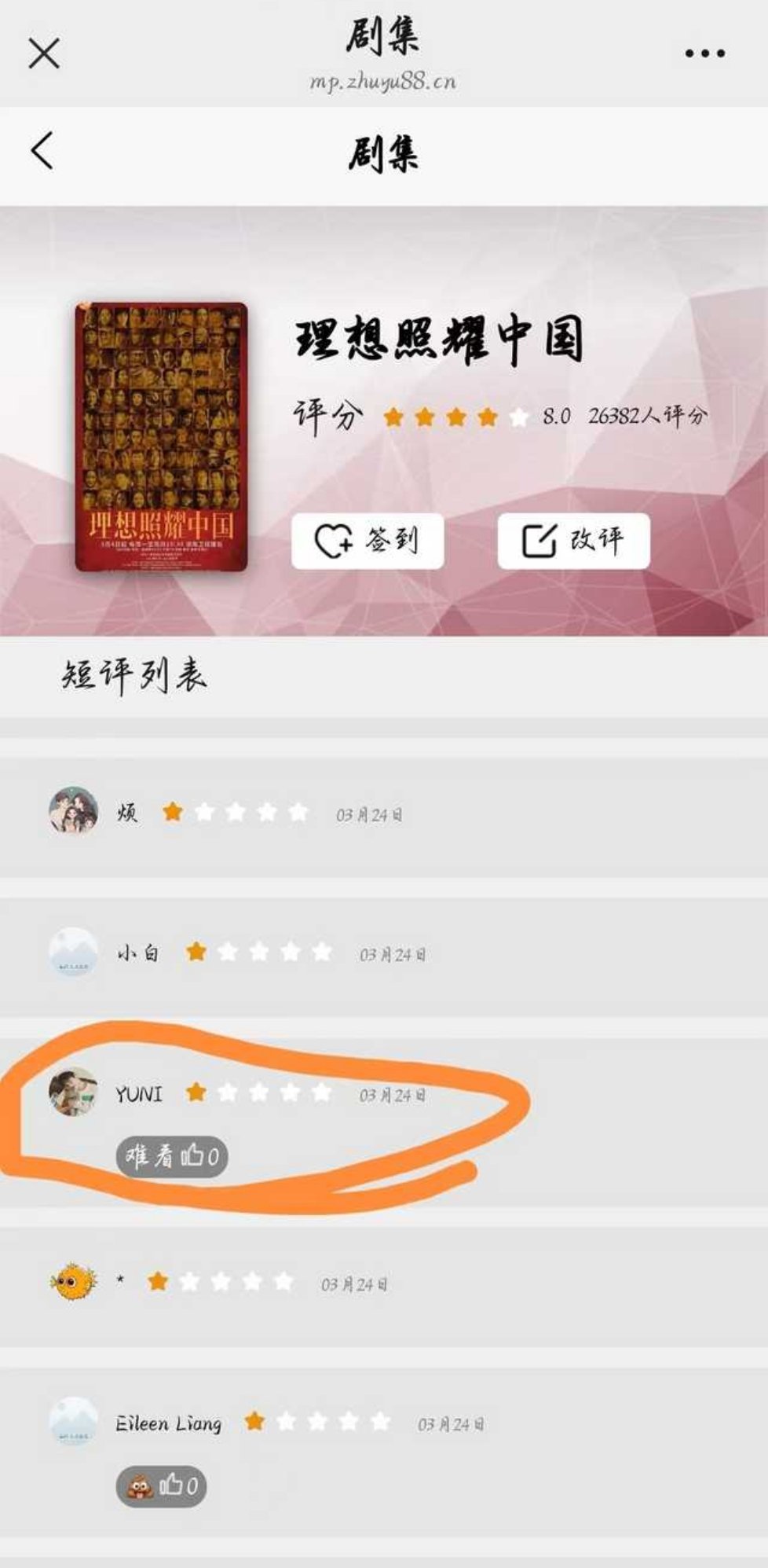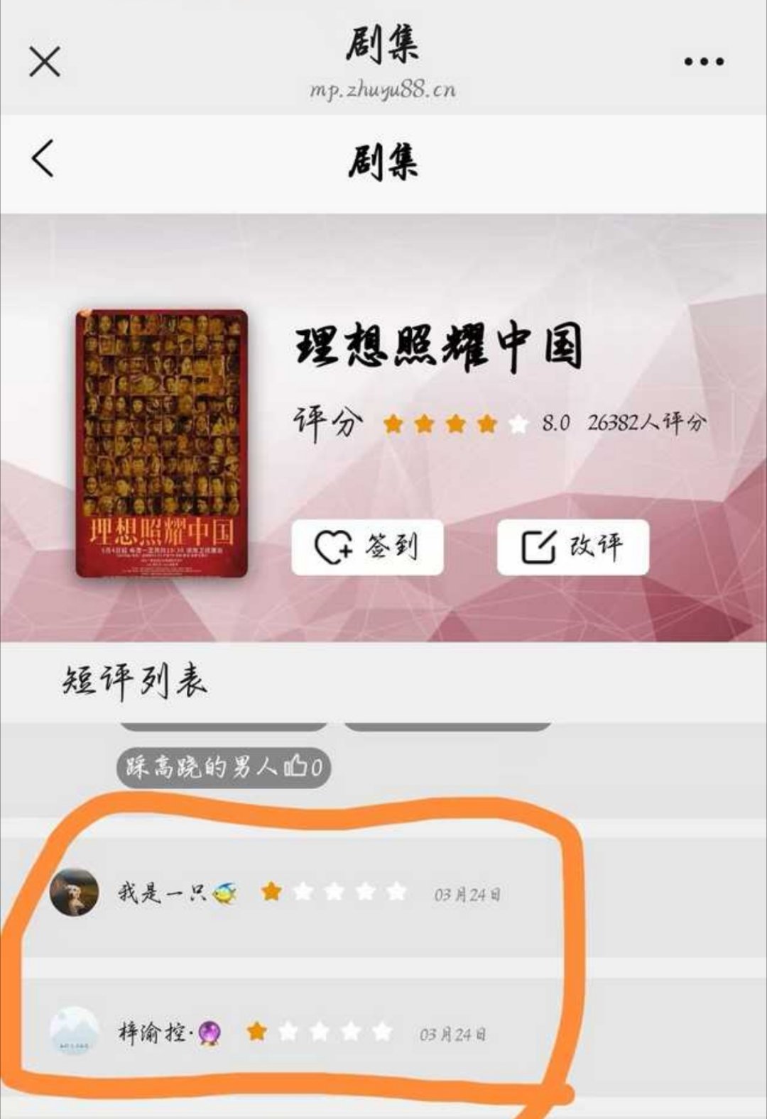 梓渝粉丝因为被侯明昊告,开始给侯明昊出演过的理想照耀中国打一星