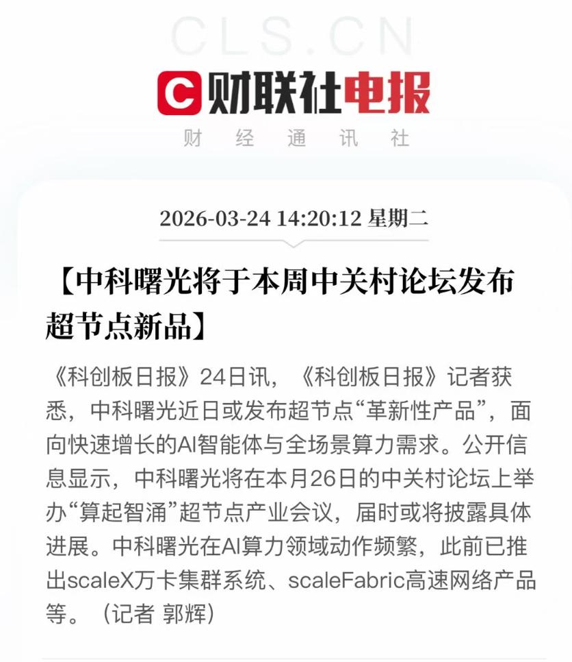 算力断层催生千亿蓝海,这步棋资本市场看懂了什么? 曙光要发超节点新品的消息一出来,最先坐不住的,除了圈内的技术咖,就是盯着算力赛道的投资人了。原因没别的,消息里透露的定位太精准了,普惠算力、填补市场空白,在如今的资本市场语境下,这几乎等同于价值洼地的代名词。 我们来看一组数据。就在上个月,国内模型周调用量冲到了5万亿Token,老黄刚在GTC上刚断言,推理算力需求将是训练的1000倍。这边呢,三大运营商之一的移动已经启动了6208卡的AI超节点集采。市场在用脚投票,算力需求已经从脉冲式变成了全天候。 但尴尬的是,供给端却出现了严重的断层。 现在市场上是两头大、中间空。一头是8卡服务器,跑个千亿模型都费劲,显存、带宽全是瓶颈;另一头是动辄上亿的百卡、千卡算力核弹,参数是漂亮,但那是给头部玩家准备的奢侈品。中间这块最广阔的中产算力需求,那些真正有业务场景、需要跑通商用模型的中小企业、科研机构,反而没产品可买。 这就是资本市场眼里的结构性机会。当行业从堆参数转向要效益,谁能用合理的成本,把高端算力变成标准化、可交付、算得过账的生产力工具,谁就能吃下这块最大的蛋糕。 曙光这次新品的传言,恰好踩在节点上。更重要的是,这次不是从零开始。去年乌镇的一套大招已经证明了其全栈自研能力,这次新品若是将核心技术适配性下放到普惠场景,技术风险和市场验证周期都会大大缩短。 对于资本市场而言,如果这步棋真能填上8卡不够用、百卡用不起的空白,曙光的估值逻辑将从硬件制造商转向算力普惠的基础设施提供商。这个叙事转换,才是真正让投资人兴奋的地方。99.9%的广泛用户,才是真正的长期主义。 AI计算GTC大会算力惠普人工智能资本市场