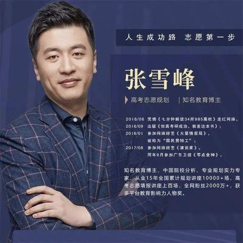 张雪峰从一名普通考研讲师,凭借对互联网传播的敏锐嗅觉和独特的表达风格,逐步成长为横跨考研辅导、高考志愿填报、综艺媒体等多个领域的教育网红企业家,其个人经历本身就是一部“知识变现”和“流量运营”的典型案例。 个人履历 ——2003-2007年:求学阶段 2003年考入郑州大学给排水科学与工程专业,大学期间曾主持活动,展现出演讲才能。 大四时协助室友搜集考研资料,意外发现自己对高校信息整理的兴趣。 ——2007-2016年:北漂起步与考研讲师生涯 2007年:毕业后加入考研培训机构,开启职业生涯,初始月薪仅2500元,住在北京海淀六郎庄村的简陋出租屋。 早期工作主要是给考研学生"打鸡血",后在讲座中被学生点醒,转向实用的高校与专业选择指导。 花费三个月时间,整合全国800多所研招单位的专业资料、录取情况、毕业生就业等信息,形成系统化课程。 凭借东北人特有的幽默感,将枯燥的考研信息转化为生动俏皮的"脱口秀"式授课风格。 累计在全国各大高校进行超过千场讲座,成为中国较早一批研究考研院校及专业选择的老师。 ——2016年:网红出圈 2016年6月:凭借视频《七分钟解读34所985高校》在网络上爆火,独特的讲解风格迅速吸引大量关注。 2016年9月:出版书籍《你离考研成功,就差这本书》。 2016年11月:参加网络综艺《火星情报局》,被称为"国民男特工"。 同年与合伙人注册成立苏州研途教育科技有限公司。 ——2017-2020年:多元发展 2017年8月:参加网络综艺《演说家》。 2017年9月:参加广东卫视《零点食神》。 持续深耕考研辅导领域,同时拓展媒体曝光。 ——2021年至今:转型高考志愿填报与创业。 2021年:离开奋斗14年的北京,选择在苏州创办峰学未来(苏州峰学蔚来教育科技有限公司)。 业务重心从考研辅导转向高考志愿填报咨询,推出高价咨询服务(一度高达15999元)。 2023年1月:当选江苏省第十四届人民代表大会代表。 2024年:公司成为高考志愿填报领域头部机构,志愿填报服务再度火爆。 教育大v张雪峰