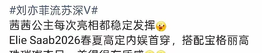 刘亦菲,冲上热搜! 随着宝格丽高珠展得落幕,她的国际舞台表现仍被热议! 米兰这场高定珠宝盛宴,聚齐了数位全球知名艺人,安妮·海瑟薇、杰克·吉伦哈尔等人都在其中,刘亦菲以品牌全球代言人身份现身,一袭缀满水晶流苏的深V礼服,在灯光下如流动星河。 她没有抢占合影C位,反而主动请安妮·海瑟薇站到中间,自己退到后排,这一举动让现场嘉宾纷纷侧目,安妮·海瑟维也笑着对她点头致意,尽显从容大气。 在全球顶尖明星扎堆的场合,从容已是难得,刘亦菲却还能靠独特气质脱颖而出、她把东方柔美与西方神女般的清冷感融合,打破西方对亚洲女性的固有印象,既带的性感张力,又不失圣洁温婉。 这种稳定发挥不是一蹴而就,背后是多年的沉淀,从《花木兰》拿下迪士尼公主角色,到成为顶奢品牌全球代言人,她从不靠作品数量刷存在感,每一次亮相都选在关键节点,用质量稳稳立足国际舞台。 有人在评论区质疑,不就是个珠宝展,至于这么吹捧吗、但亦有不少人觉得,能在国际场合从容展现东方美,本身就值得肯定 。 其实这场亮相的意义,早已超出时尚活动本身、它让更多人看到,东方女星在国际舞台上,不仅能跟上节奏,更能带的独特文化魅力,打出属于自己地风格,可这么个样得从容底气,又有多少人能真正拥有。 在我看来,刘亦菲的“稳定发挥”,从来不是靠运气、她选的每一步都踏实,沉下心打磨实力,才换来如今的从容、这种不紧不慢却步步精准的状态,值得不少急于求成的人好好琢磨! 这事你怎么看?