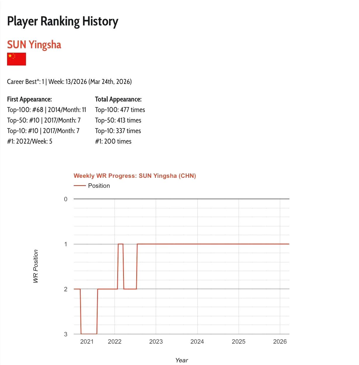 7月开始就再也没有掉下过乒乓球世界第一的位置,