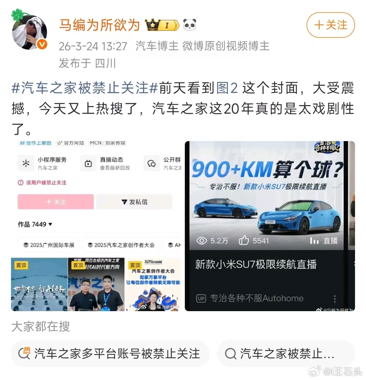 汽车之家早在1月就被点名了,然后全网被禁止关注。
