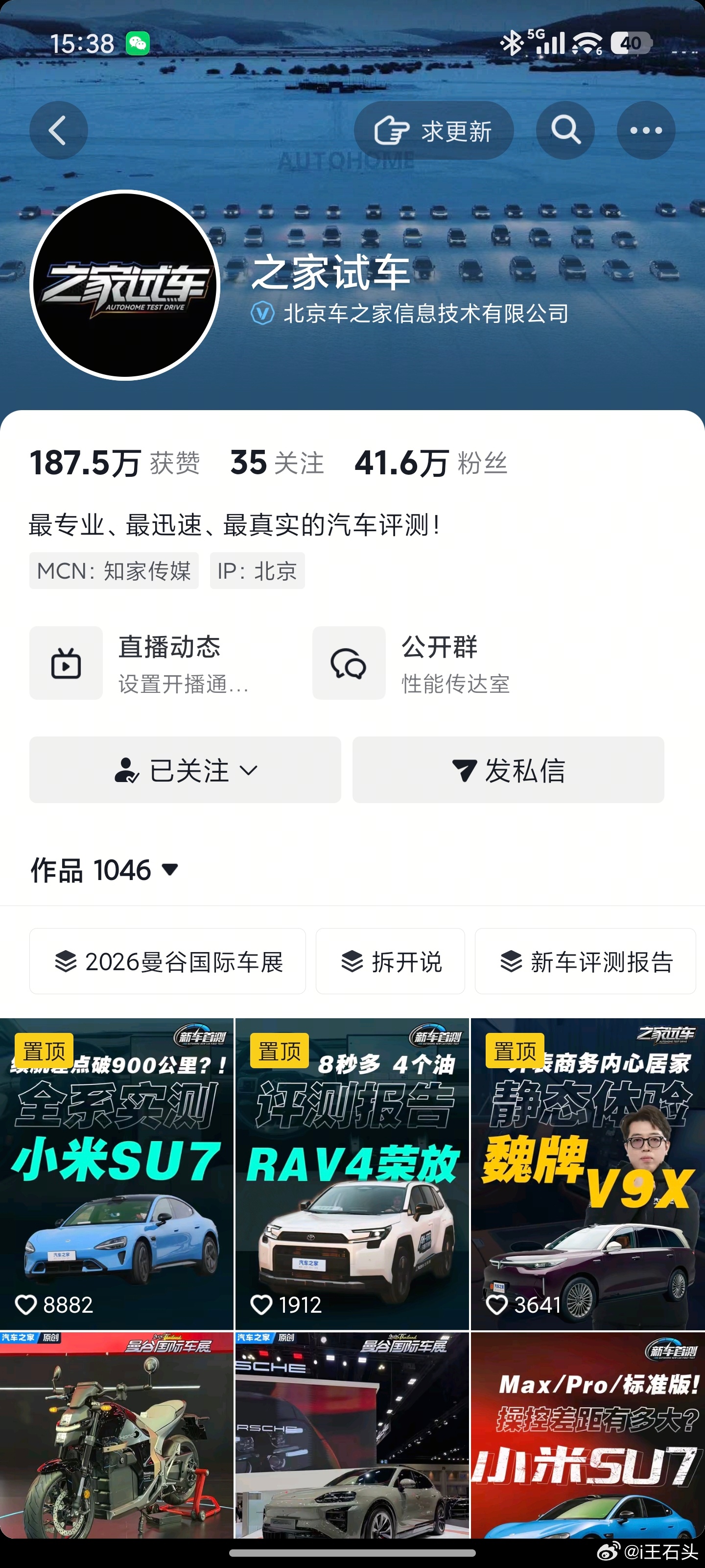 这次测试新一代SU7是用的“之家试车”这个号,2个小时前还在更新。