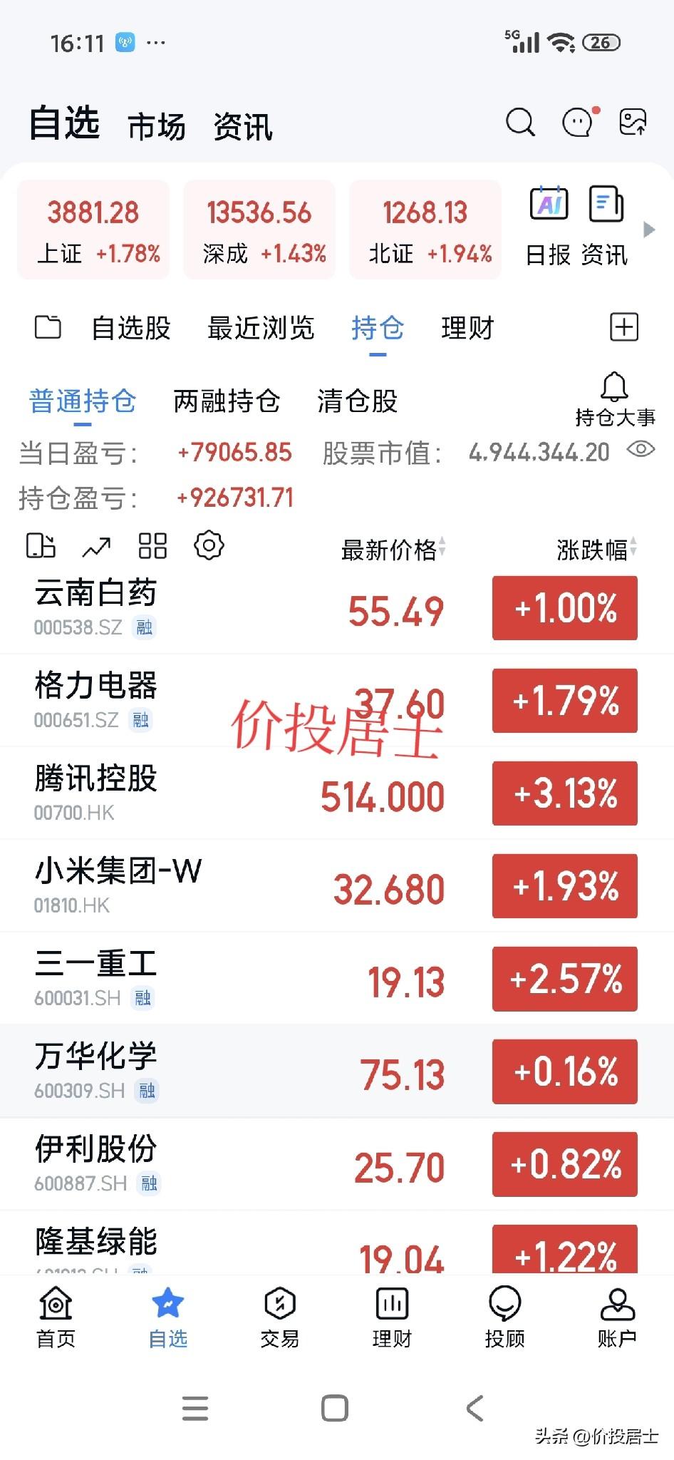 这会港股收盘了!今天想和大家讨论个问题,那就是高端白酒拥有超高端毛利润与净利润,也拥有顶级的商业模式,然而白酒这个行业整体销量每五年下降一倍,长此以往会不会出现一个临界点,最后彻底动了高端白酒这块奶酪?说白酒国际化,可是现在别说老外喝不惯我们的白酒,很多年轻人都喝不惯,这最终又会变成什么局面? 以上是纯讨论,不带有个人感情色彩,大家可以说说自己的看法。此外今年截止到今天实盘账号回撤8.3%,牵走的一只牛,慢慢的一只一只通过的鸡的形式还回来也行[笑哭]当然,这里是开个玩笑咱们依然随他去[赞]我其实还等着补仓呢[捂脸]