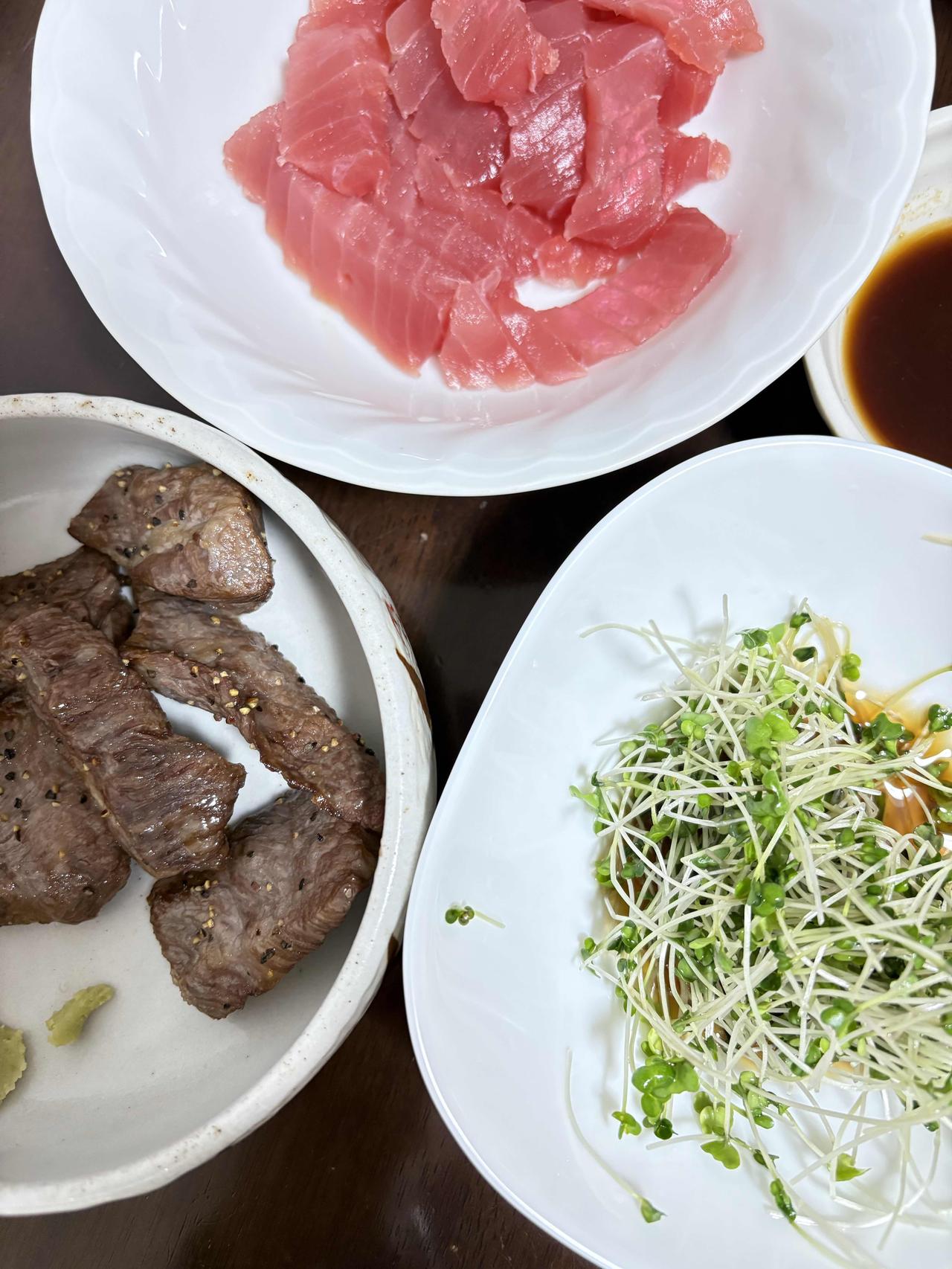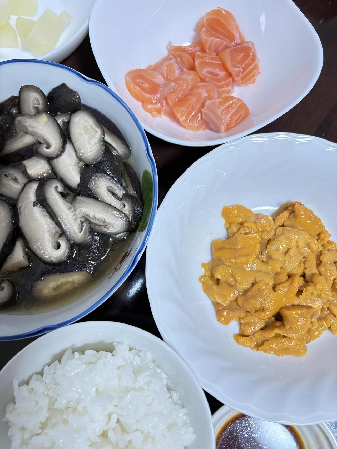 红色金枪鱼低调奢华,肉质柔软滑嫩,有适度弹性;橙红色三文鱼纹理清晰,肉质肥厚柔美;粉色鰆鱼冰爽弹牙,肉质紧实细腻不松散;黄色海胆甘甜鲜香美味。