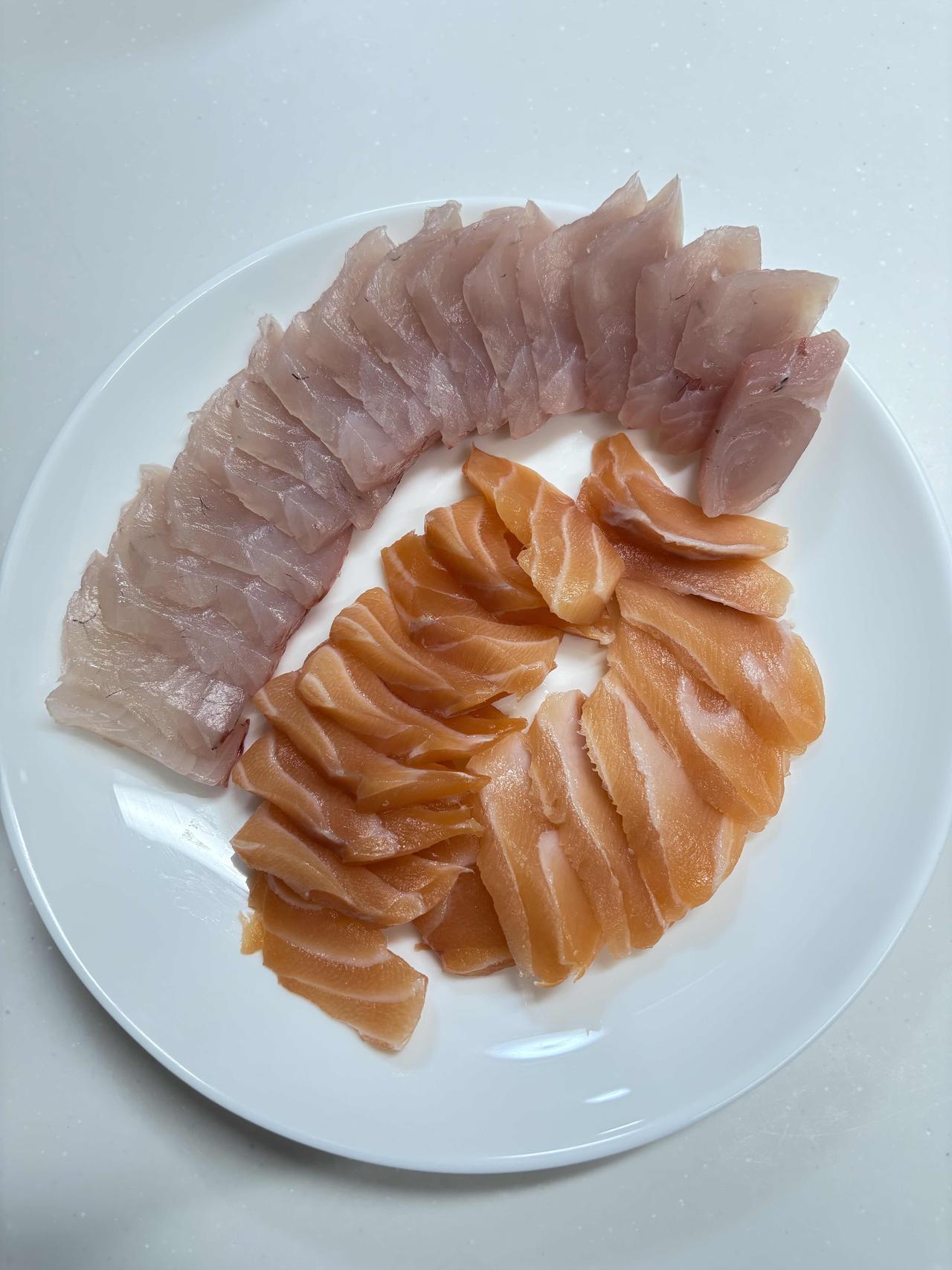 红色金枪鱼低调奢华,肉质柔软滑嫩,有适度弹性;橙红色三文鱼纹理清晰,肉质肥厚柔美