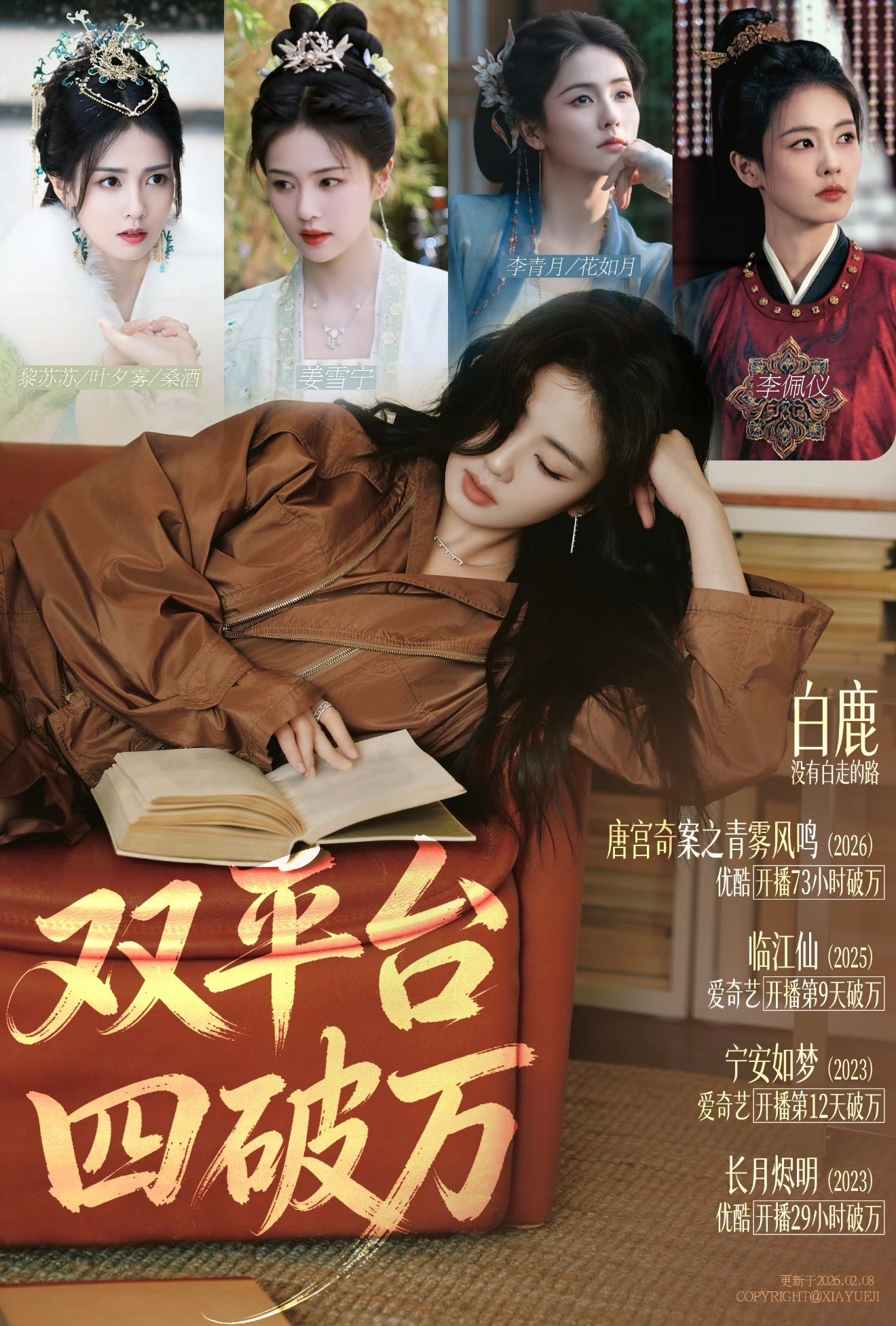 白鹿《唐宫奇案之青雾风鸣》云合V30集均2275万,是2026年后开播第一部集均破2000万的剧集。白鹿剧粉盘真大。优酷平台日活低,有了白鹿,托举到剧集播放2026年目前效果最好白鹿唐宫奇案之青雾风鸣