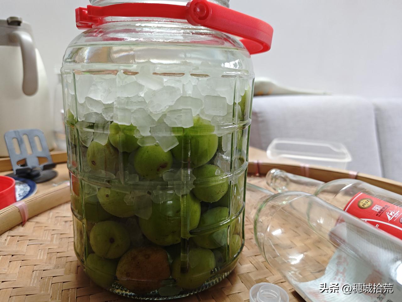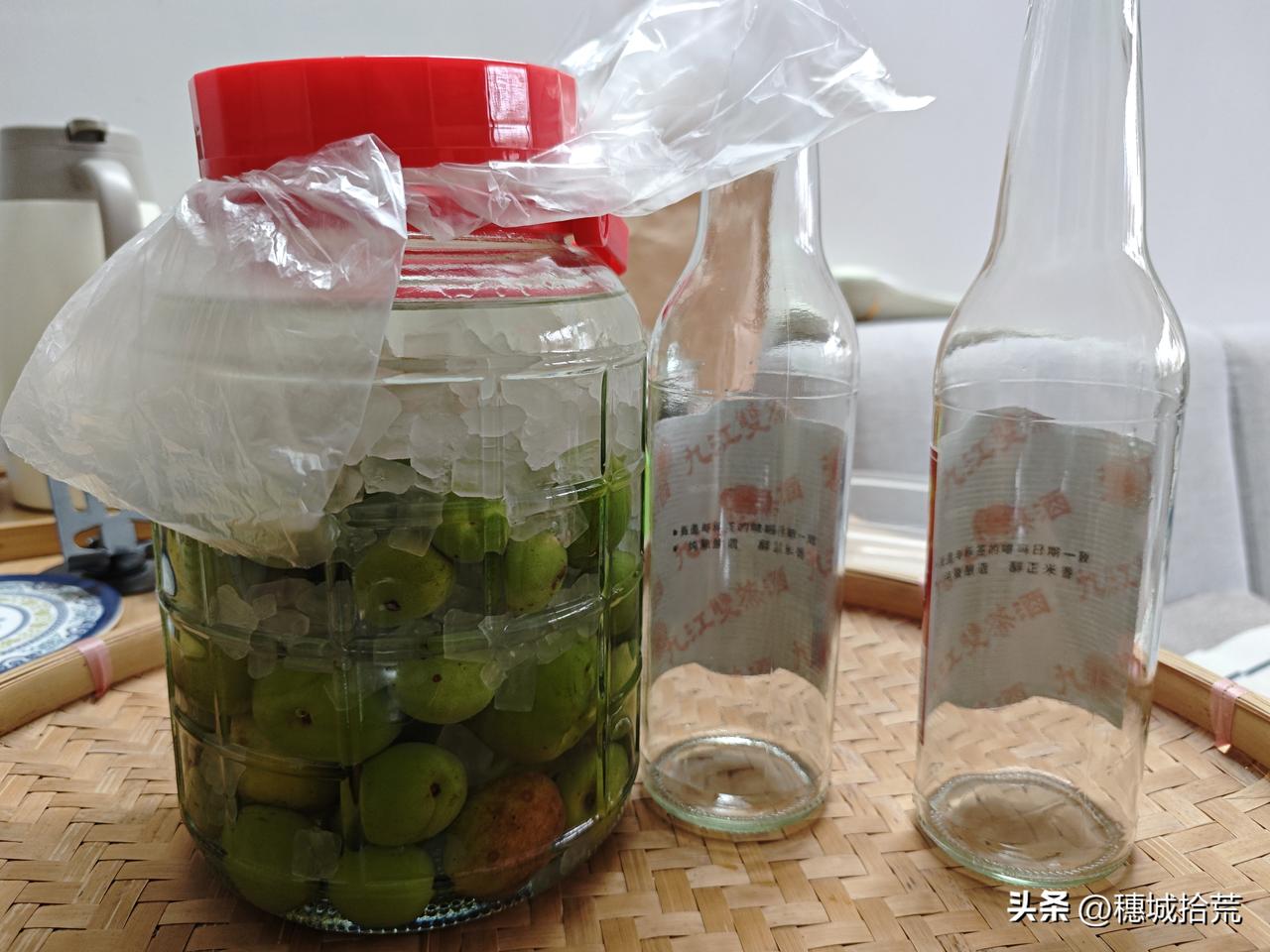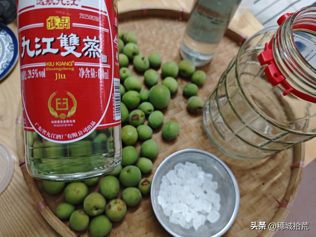 事已,一年后,青梅煮酒,论英雄! 2斤青梅果,2瓶广东米酒,再来一斤冰糖,泡成了人生中的第一瓶青梅酒。 这个比例还是跟网上的学的,梅子:酒:糖=1:1:0.4-0.6,糖的多少决定酸度,我喜欢甜的,可是糖买少了,只放了0.5的比例,即1斤,取个中间值。 一切都开始从0开始,包括泡青梅的方法和材料也有千差万别,其中梅子蒸不蒸、酒用高度数还是低度数,各有各理。 我的梅子不蒸,用的广东米酒的度数不高,只有29.5度,梅子已下,所有的材料都放进去了,实践一次就明了。 用广州自产的青梅泡的酒,口感会不会更加醇香?拭目以待! 此外还有一点不清楚,请教各位友友,广东米酒泡青梅,还需不需要定时放气?网友晒在市民广场摘的青梅青梅酒 广州 摘青梅 泡酒