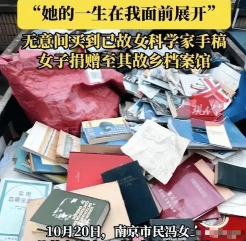 2024年秋,南京1女子在废品站发现一摞发黄的手稿,她问摊主:“这多少钱?”老板随口答道:“没人要,按废纸价给就行。”谁料,女子二话不说,掏出60元钱把旧纸全买下来了,老板高兴极了。然而,当女子看清手稿的信息后,立刻红了眼眶! 麻烦各位读者点一下右上角的“关注”,留下您的精彩评论与大家一同探讨,感谢您的强烈支持! 2024年秋天,南京一处不起眼的废品回收站里,堆满了蒙尘的旧物。 市民冯女士的目光,掠过杂乱的旧家电和废纸壳,落在角落一捆用旧麻绳扎起的纸本上。 它的红色硬壳封面在灰扑扑的环境里格外扎眼。 冯女士随口问价,老板正忙着,头也不抬地挥挥手: “都是没人要的废纸,你要的话,给个几十块钱拿走得了。” 冯女士没多想,付了六十元,带走了这捆沉甸甸的“废品”。 回到家,当她小心解开麻绳,拂去积尘,轻轻翻开脆弱的纸页时,时间仿佛瞬间倒流。 眼前不是想象中的旧账本,而是一页页写满复杂化学结构式、精确实验数据和细致手绘示意图的笔记。 蓝黑墨水字迹工整有力,红笔批注密密麻麻,记录着无数次的演算、修正与推倒重来。 纸张已经泛黄发脆,但字里行间透出的那份近乎苛刻的严谨,却跨越半个多世纪,扑面而来。 更让她心头一颤的,是夹杂在笔记中的一张老旧工作证,上面印着“江苏省药物研究所 研究员 王锐”。 “王锐”这个名字,对公众而言是陌生的。 但眼前这浩如烟海的手稿,却无声地诉说着一项几乎被遗忘的功绩——中国自主研制抗血吸虫病关键药物“锑-273”的完整历程。 上世纪中叶,血吸虫病在江南水乡肆虐,被称为“大肚子病”,夺走了无数生命。 王锐研究员,便是数以万计默默投身这场“送瘟神”战役的科技工作者中的一员。 她的战场是寂静的实验室,她的武器是试管与数据。 这重达数公斤的手稿,系统记录了她跨越三十余年的研究: 超过两百次关键实验的原始参数、药物分子的艰难推导、临床效果的反复比对…… 每一页,都凝结着那个年代科学家“把论文写在祖国大地上”的纯粹信仰与艰辛付出。 然而,这座用纸墨和心血构筑的丰碑,却险些在半个世纪后,以每公斤几毛钱的价格,永远消失在造纸厂的化浆池中。 它的流落,或许是一次家庭清理中的无意疏忽,但其命运却像一面冰冷的镜子,映照出一个令人不安的对比: 在信息泛滥的今天,娱乐明星的琐事可以被反复咀嚼、珍藏,而一位功勋科学家关乎千万人生命的毕生研究实录,却可能因“无人识货”而彻底湮灭。 我们对集体记忆的轻慢,有时就藏在一次漫不经心的“断舍离”里。 所幸,这个故事有一个温暖的结局。 冯女士在震撼与感动之后,没有将其视为私藏,而是辗转联系了专业机构。 经鉴定,这批手稿极具价值,完整呈现了特定历史时期的科研路径与方法,填补了相关领域的档案空白。 她最终决定将其无偿捐赠,让这些险些“流浪”的瑰宝,在档案馆中得到永恒的安身之所。 一场始于废品站的偶然,最终抵达了庄严的殿堂。 这六十元“抢救”回来的,远不止是几公斤旧纸。 它是一个时代的科学记忆,是一段不该被湮没的奋斗史诗,更是一记清亮的警钟: 我们民族最宝贵的财富,有时并非陈列在明亮的展厅,而可能静卧在被忽略的角落。 真正的尊重,不止于对辉煌成果的颂扬,更在于对创造过程及其所有载体的珍视与守护。 唯有如此,那些沉默的功勋与不朽的精神,才能穿透时光,持续照亮未来。 主要信源:(人民日报健康客户端——她花60元在废品站买下已故药学家手稿)