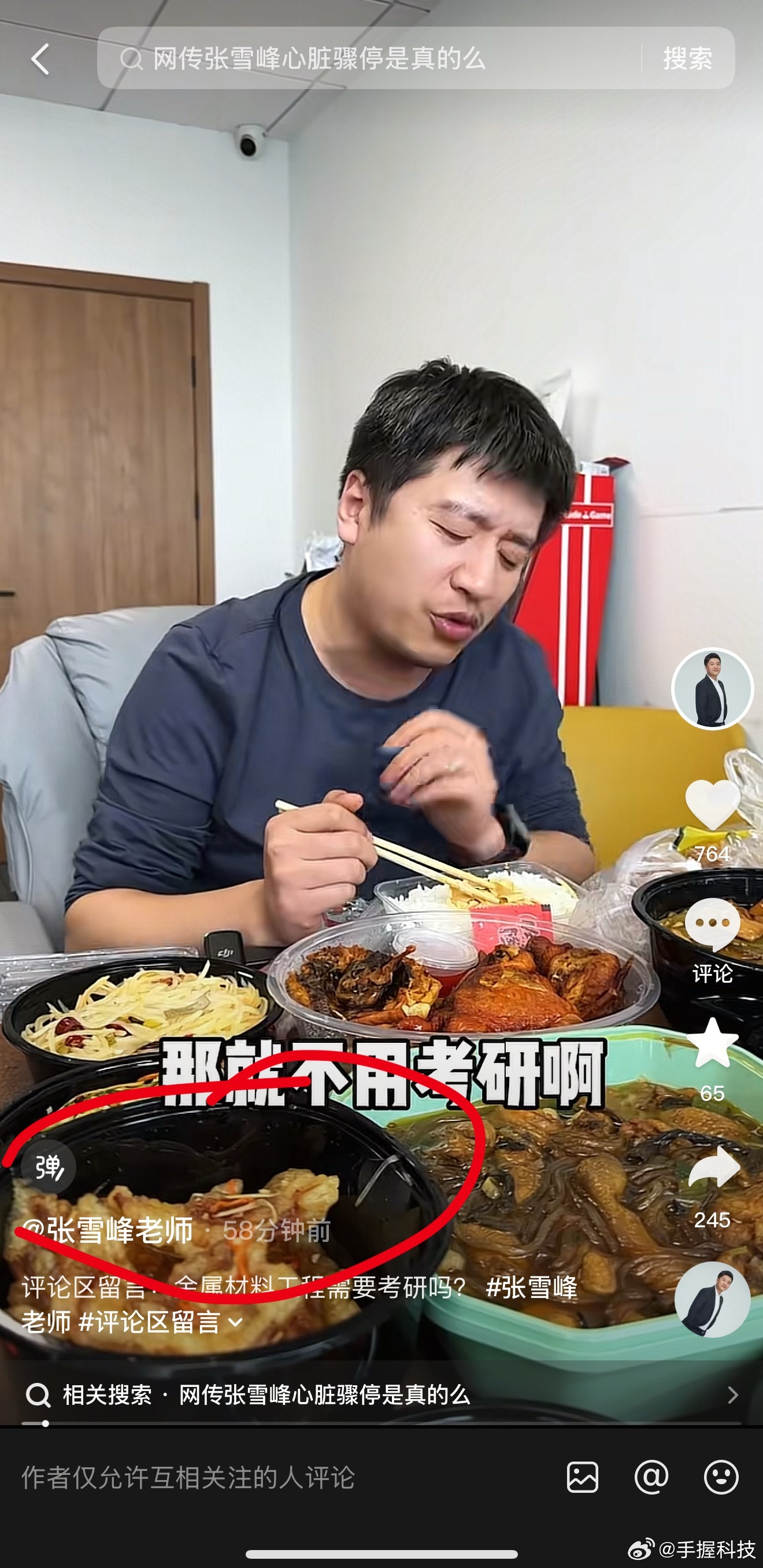 合伙人回应张雪峰心脏骤停抢救传闻他的抖音在一小时前更新过,不过评论区已经关了…现