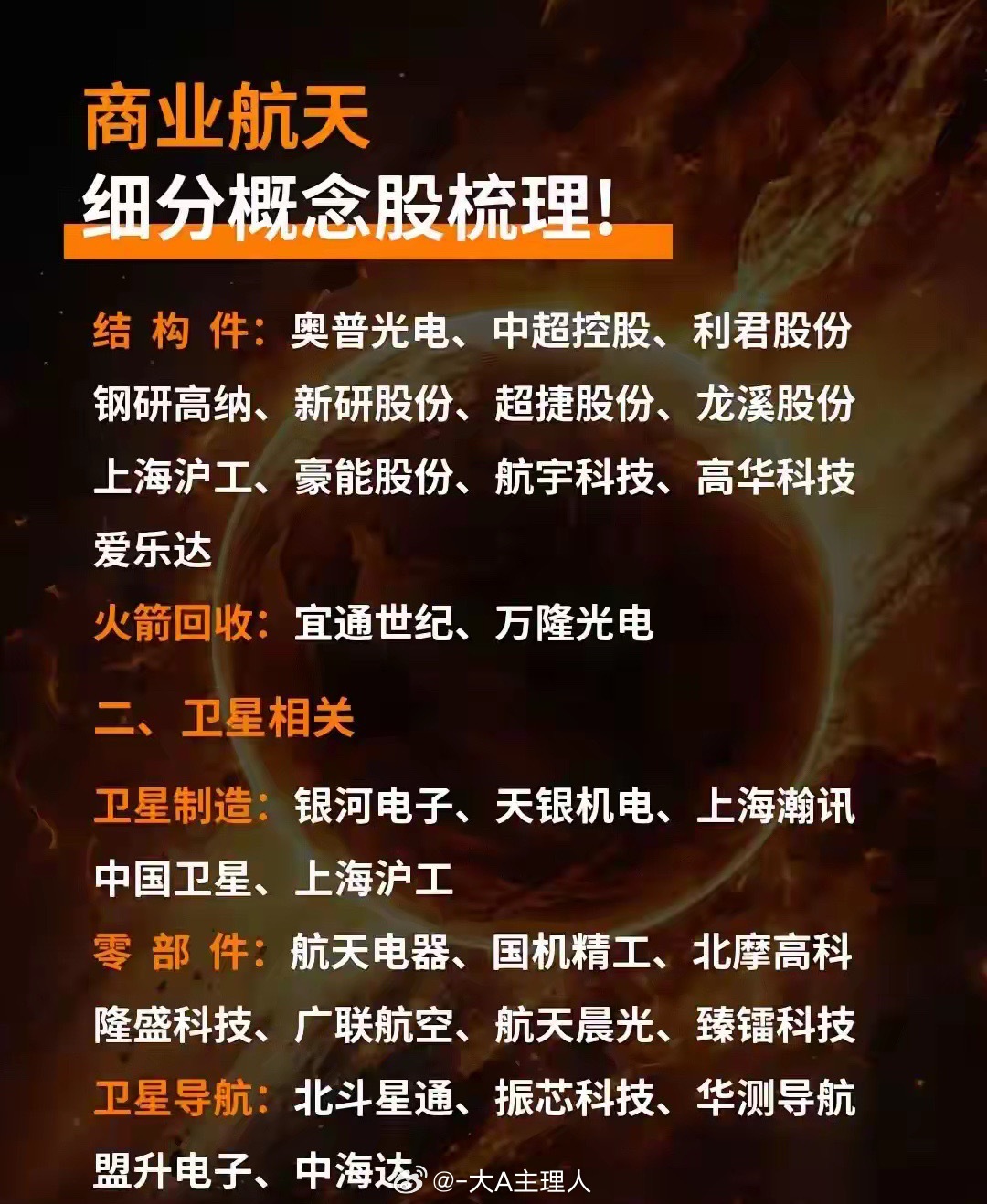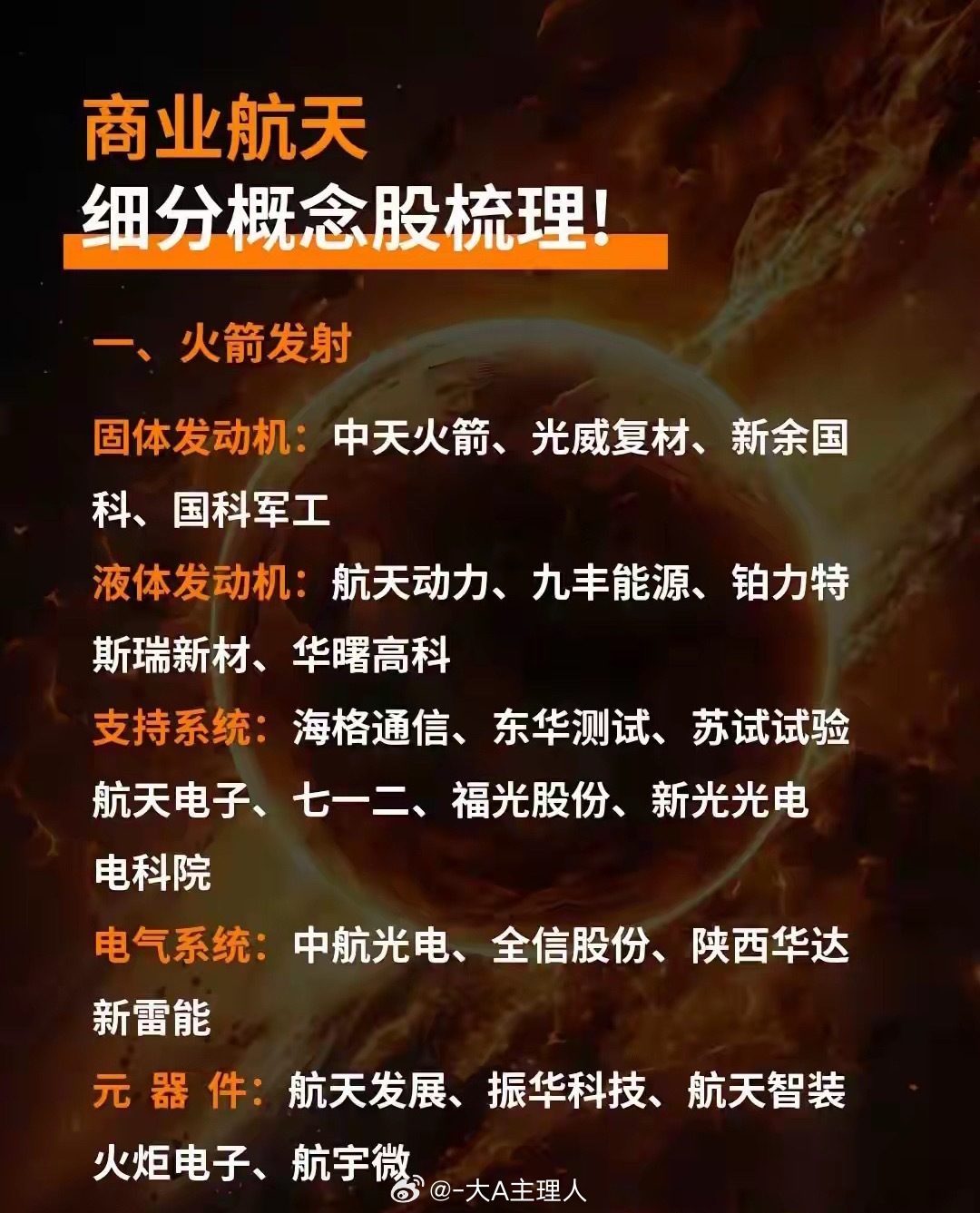 商业航天细分概念股梳理!