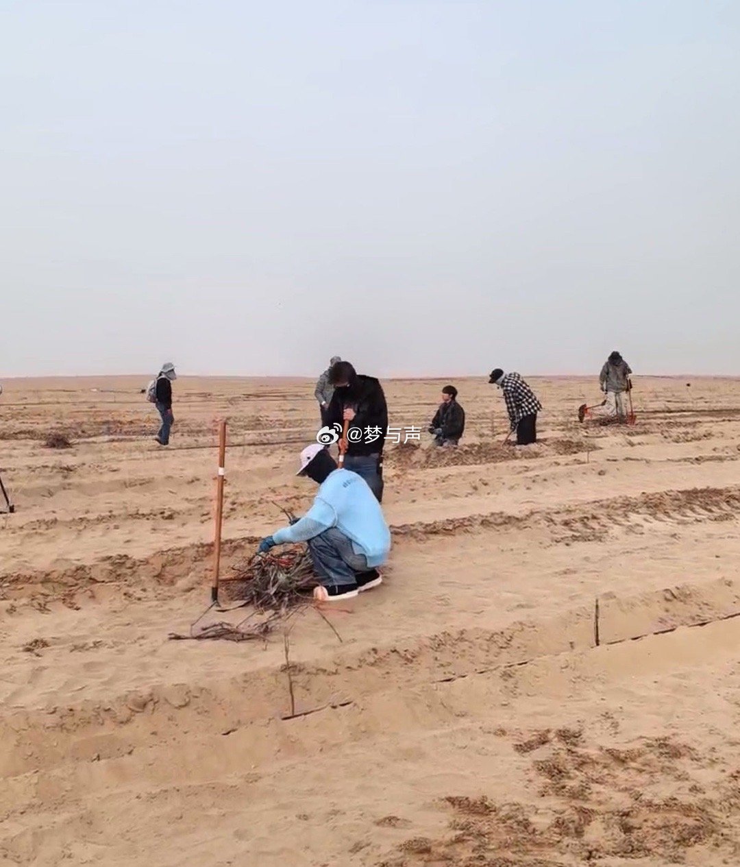 十个勤天要在沙漠种玫瑰 直播点进去就看到他们在沙漠里挖坑,还以为搞什么大工程。结