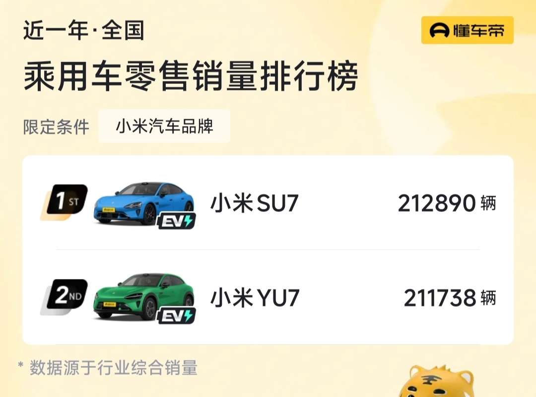 小米汽车业务收入首超千亿小米去年的汽车收入超千亿证明,YU7上攻的路子是对的。