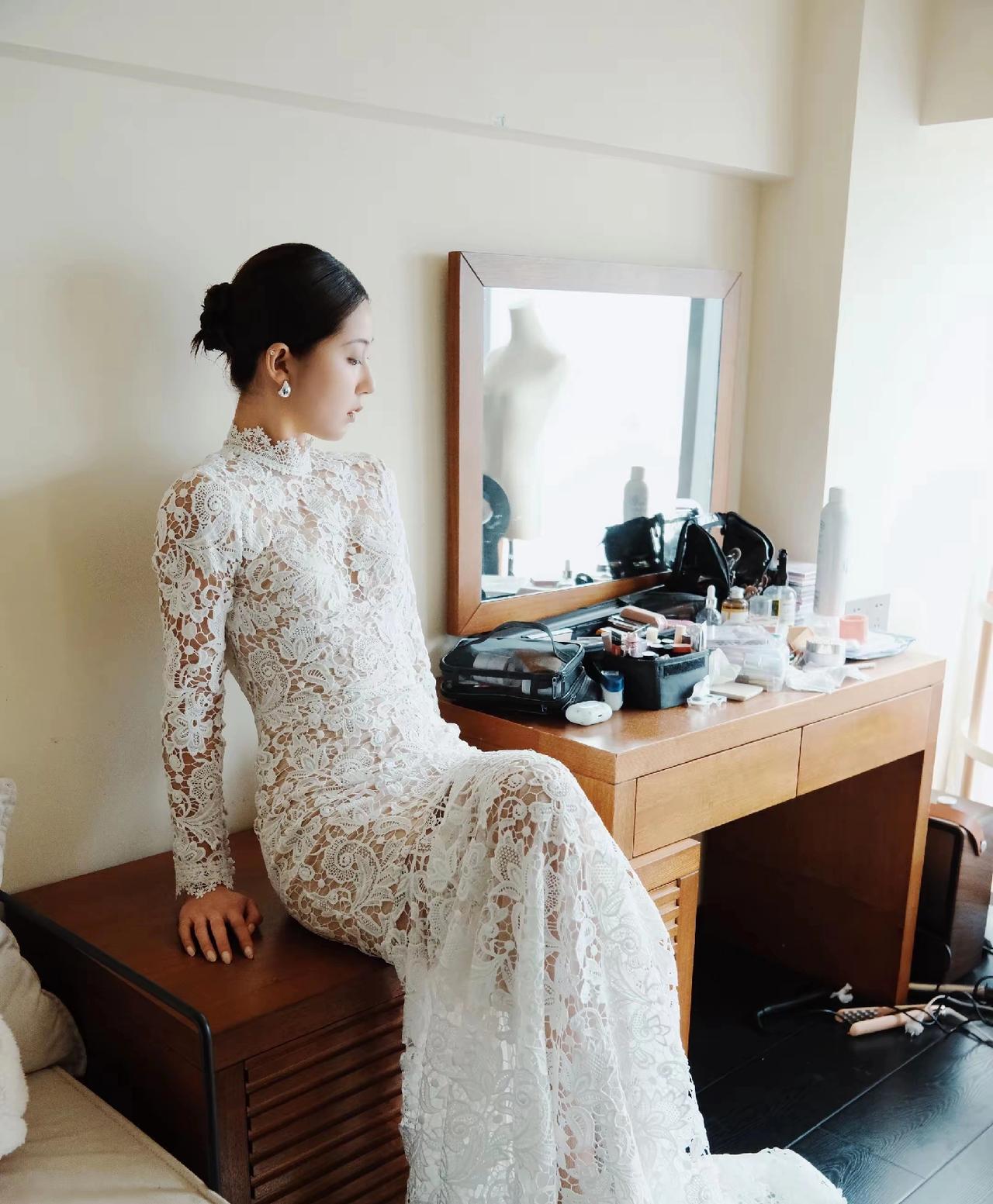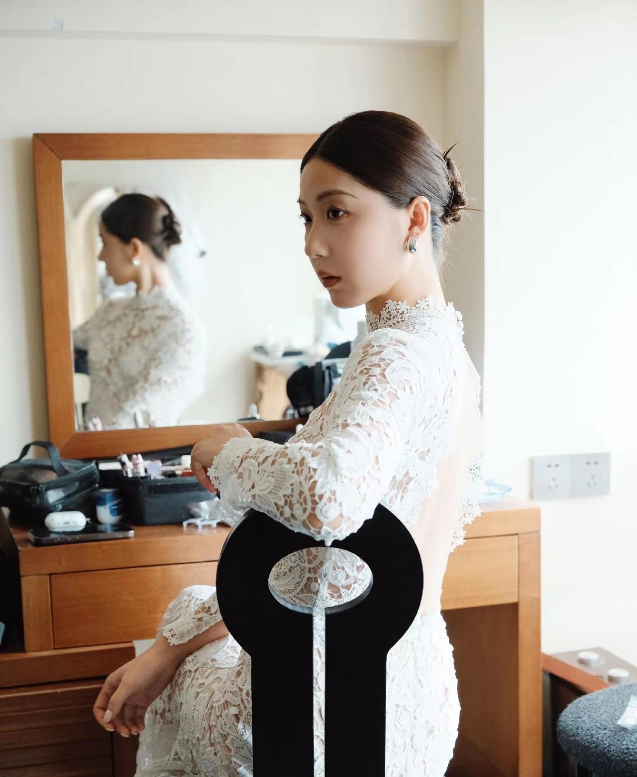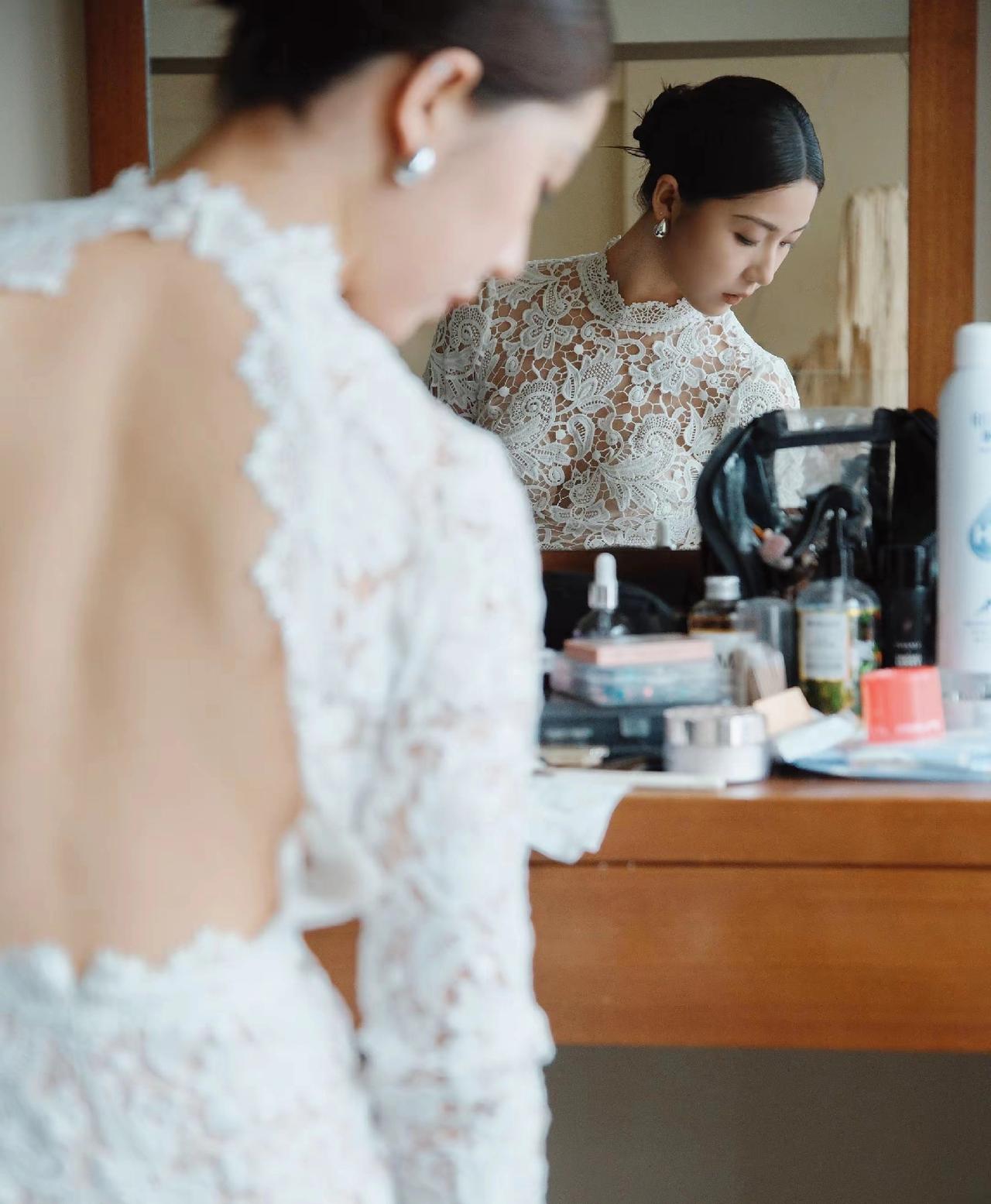 优雅的婚纱背影,静谧的梳妆台,等待美好的一天。明日嫁做他人妇,有些许的小紧张,想到未来的美好生活,身着婚纱的美丽新娘脸上露出了笑容新娘捧花照 海边婚纱美照 婚纱典雅照 魅力礼服照 婚纱礼服写真照 礼服人像 内景婚纱大片