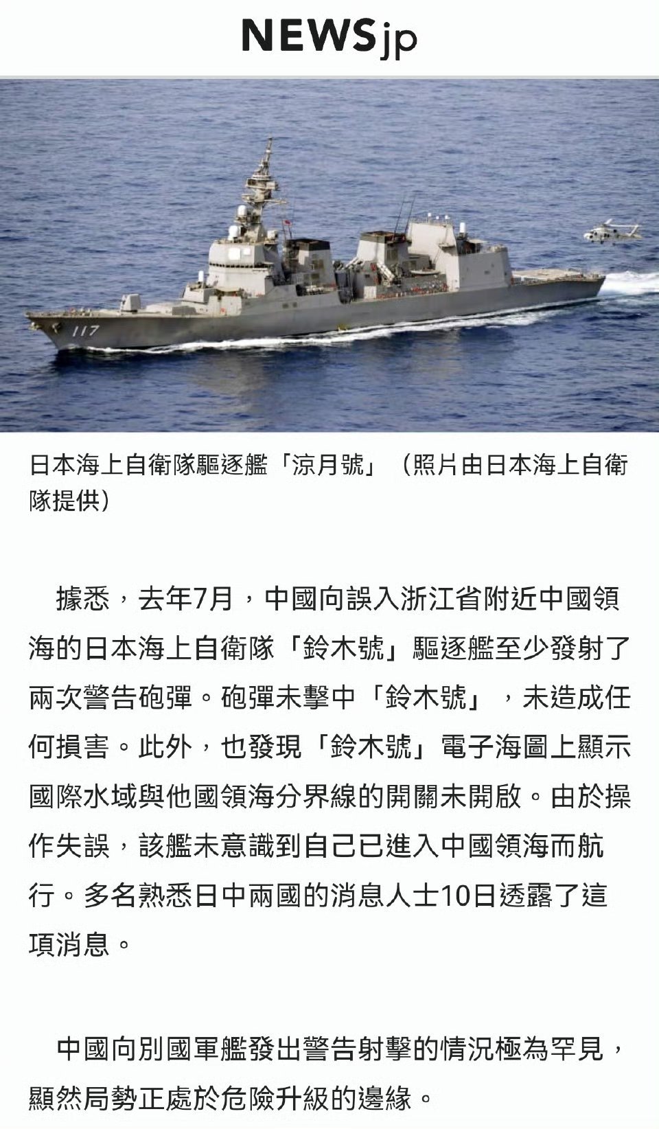 大家不要忘了前年的凉月号驱逐舰事件。照这么下去的话。下次就会有日本自卫队人员,“以神的名义”直接对PLA舰机开火。日本能承担后果吗?特朗普说的好, 偷袭这个事情,日本最有经验。中方要求日方立即彻查严惩