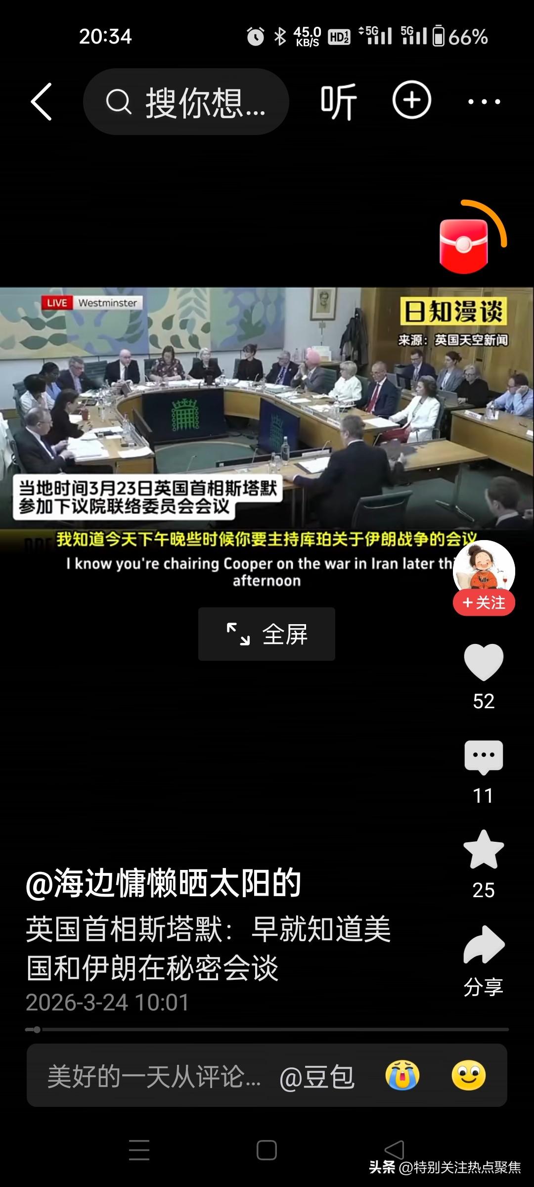 英国首相斯塔默表示,他早就知道美国和伊朗之间正在进行秘密会谈。