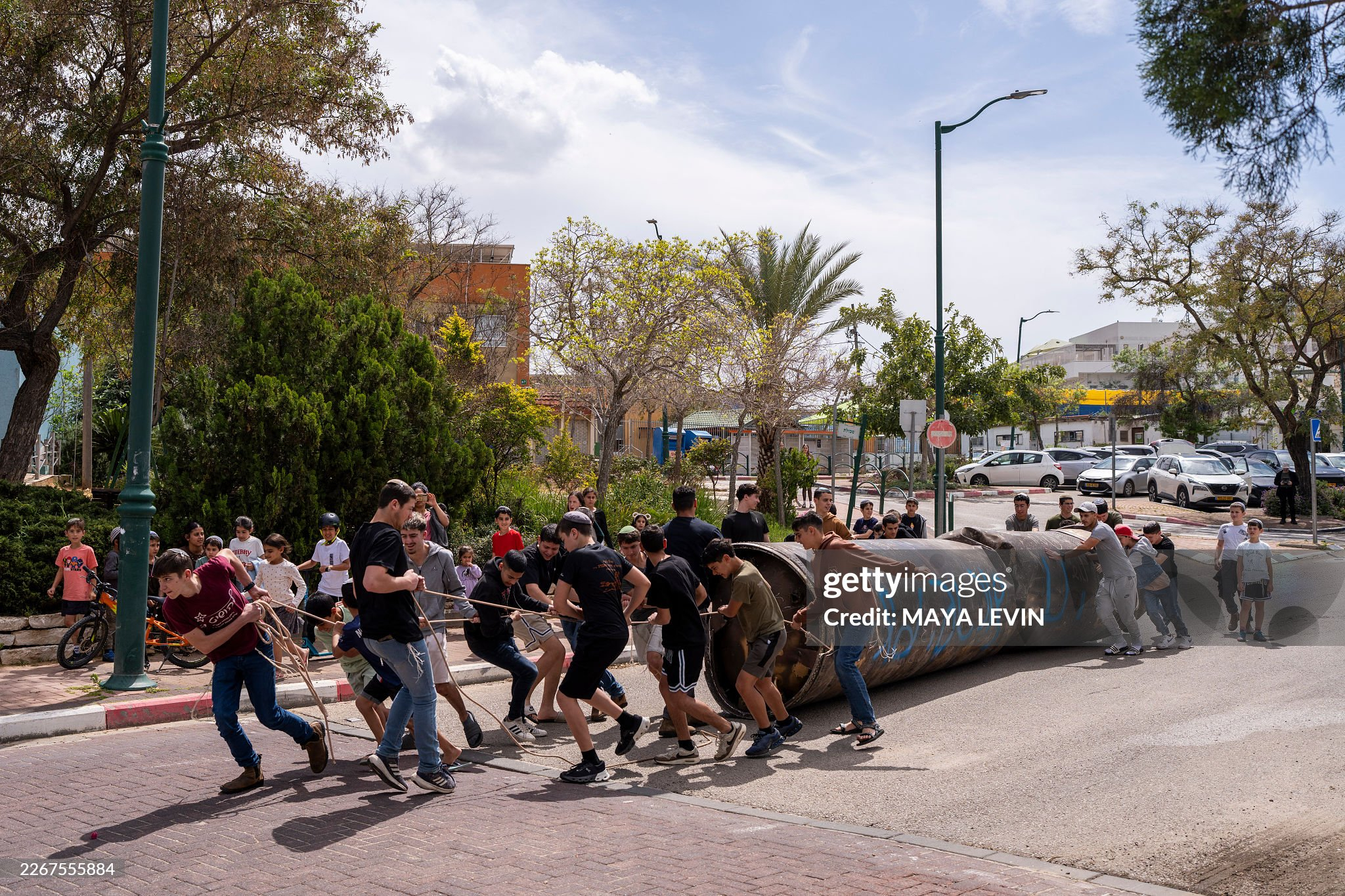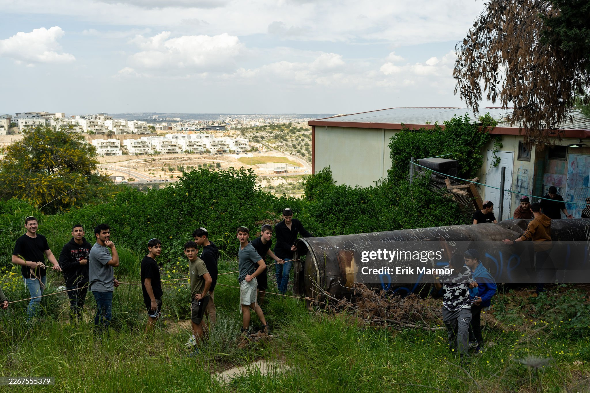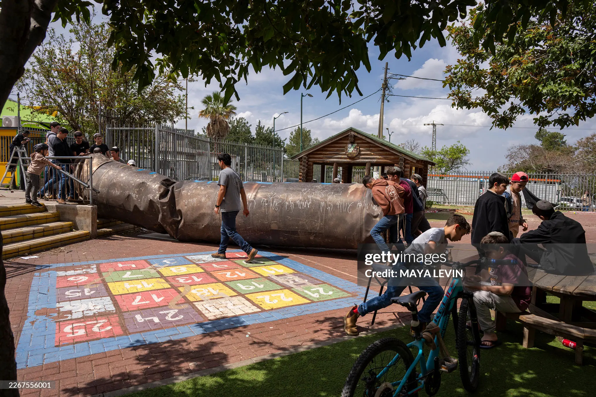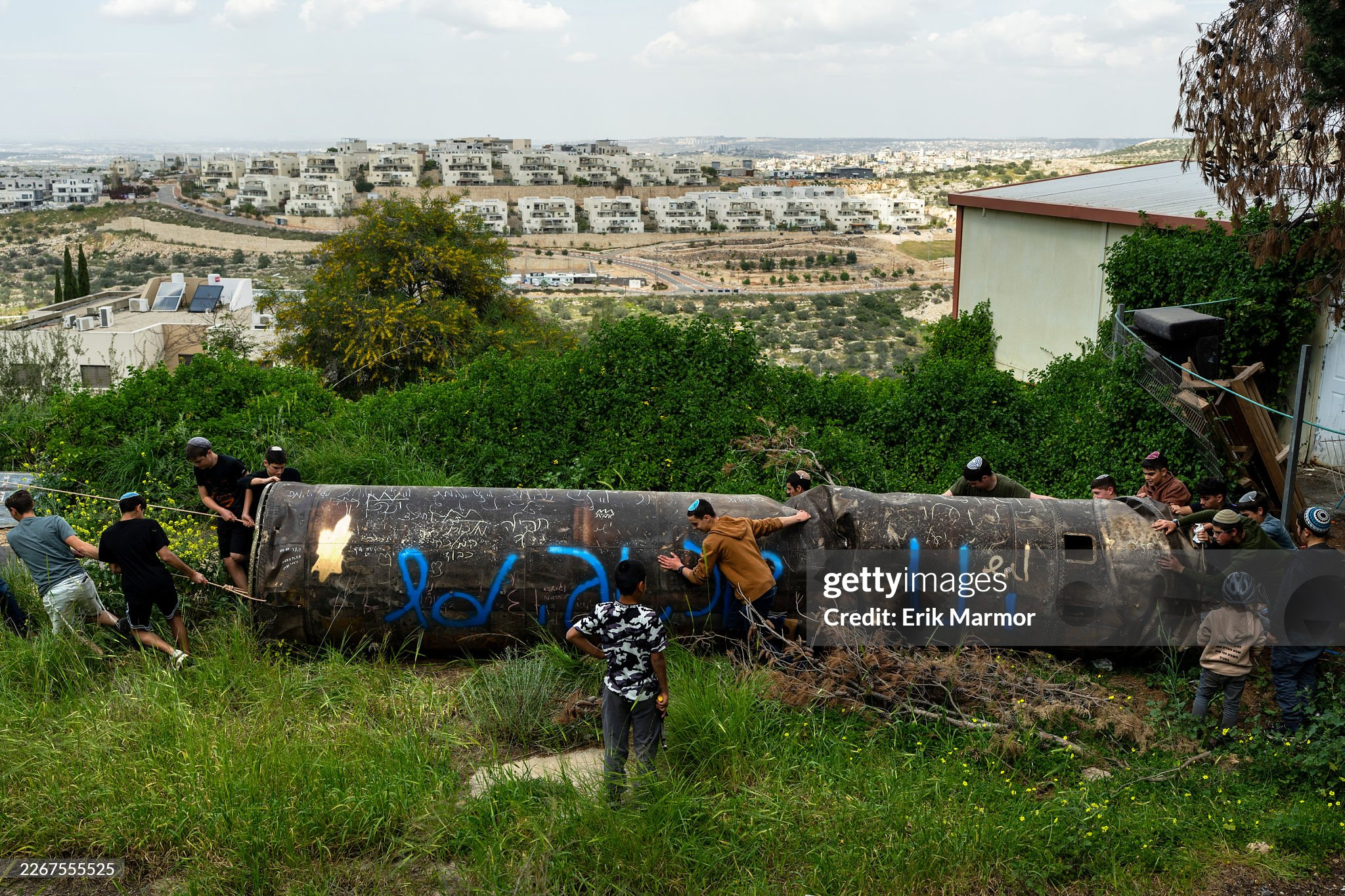 3月23日:在约旦河西岸的以色列定居点佩杜埃尔,以色列人将一枚伊朗弹道导弹的助推器残骸搬运到一座学校的操场上供儿童玩耍。美伊以冲突
