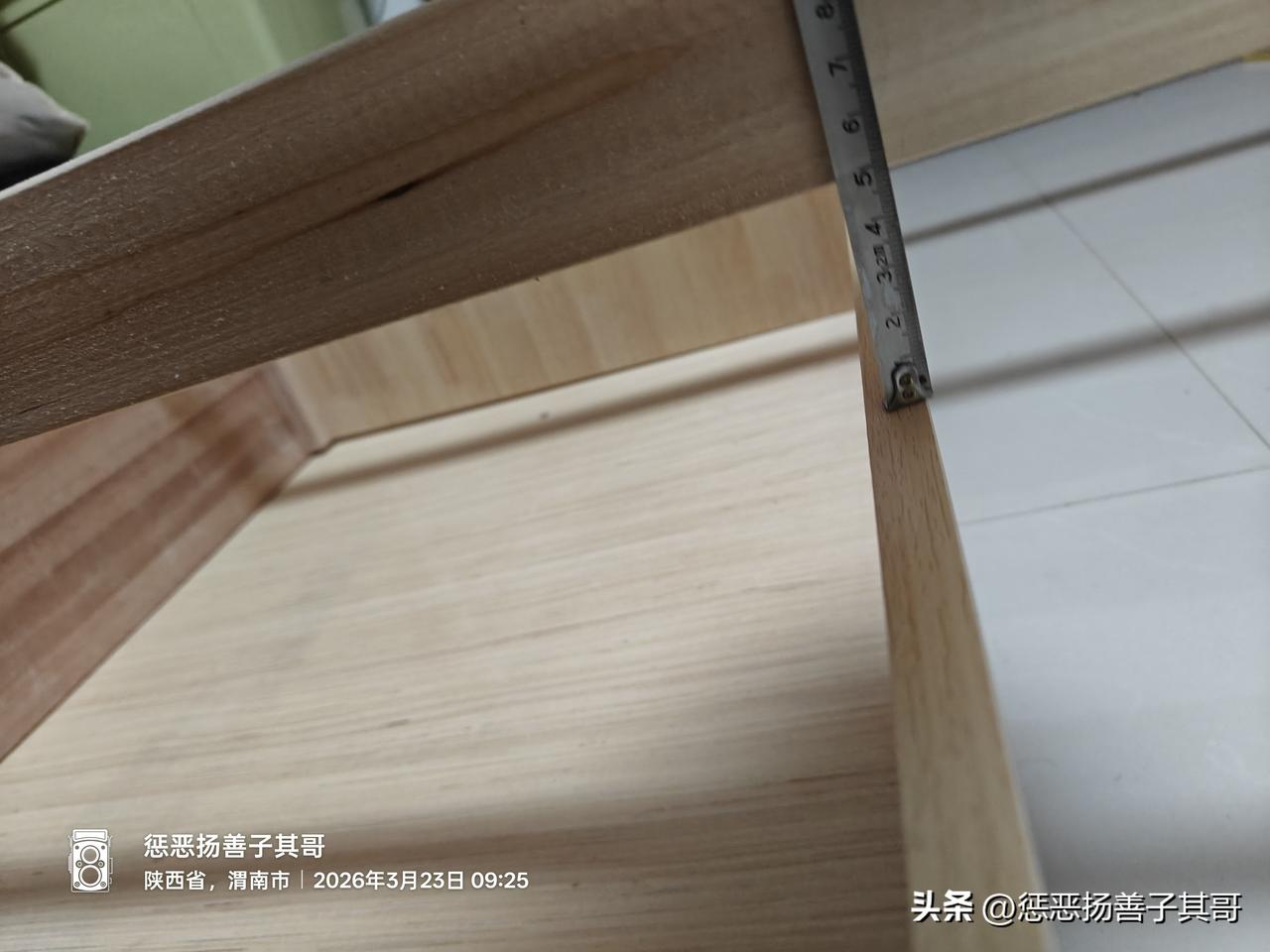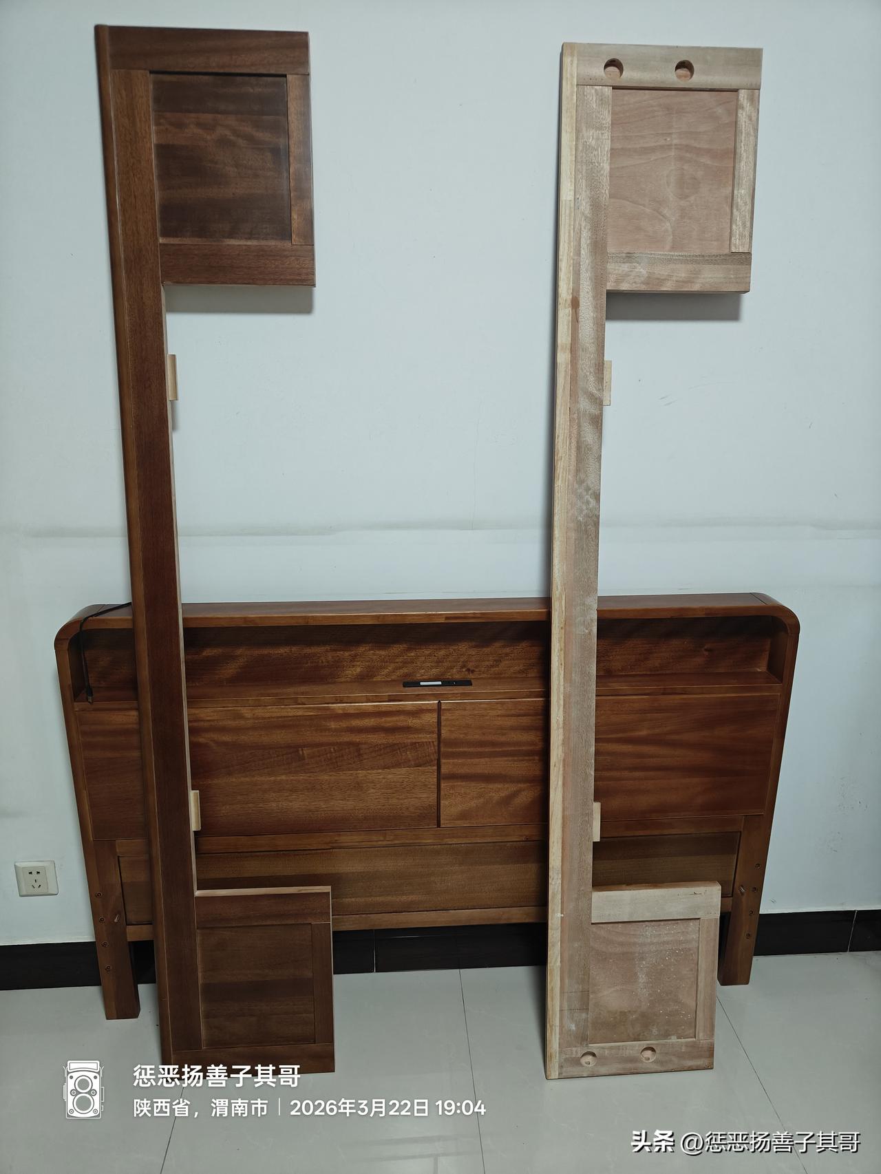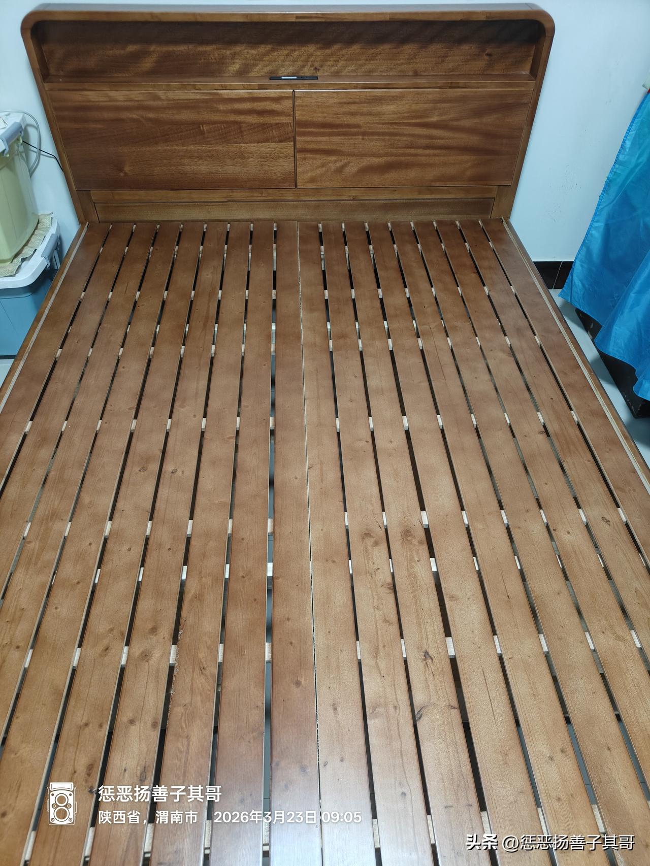 这家旗舰店网上售卖价格在2200元左右的这个箱体床,真实床又是怎样了呢?工人安装完整床后,通过仔细检查,我发现这个号称全实木,床头床尾进口胡桃木的床,有这么几个缺陷: