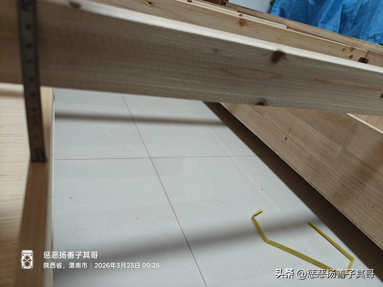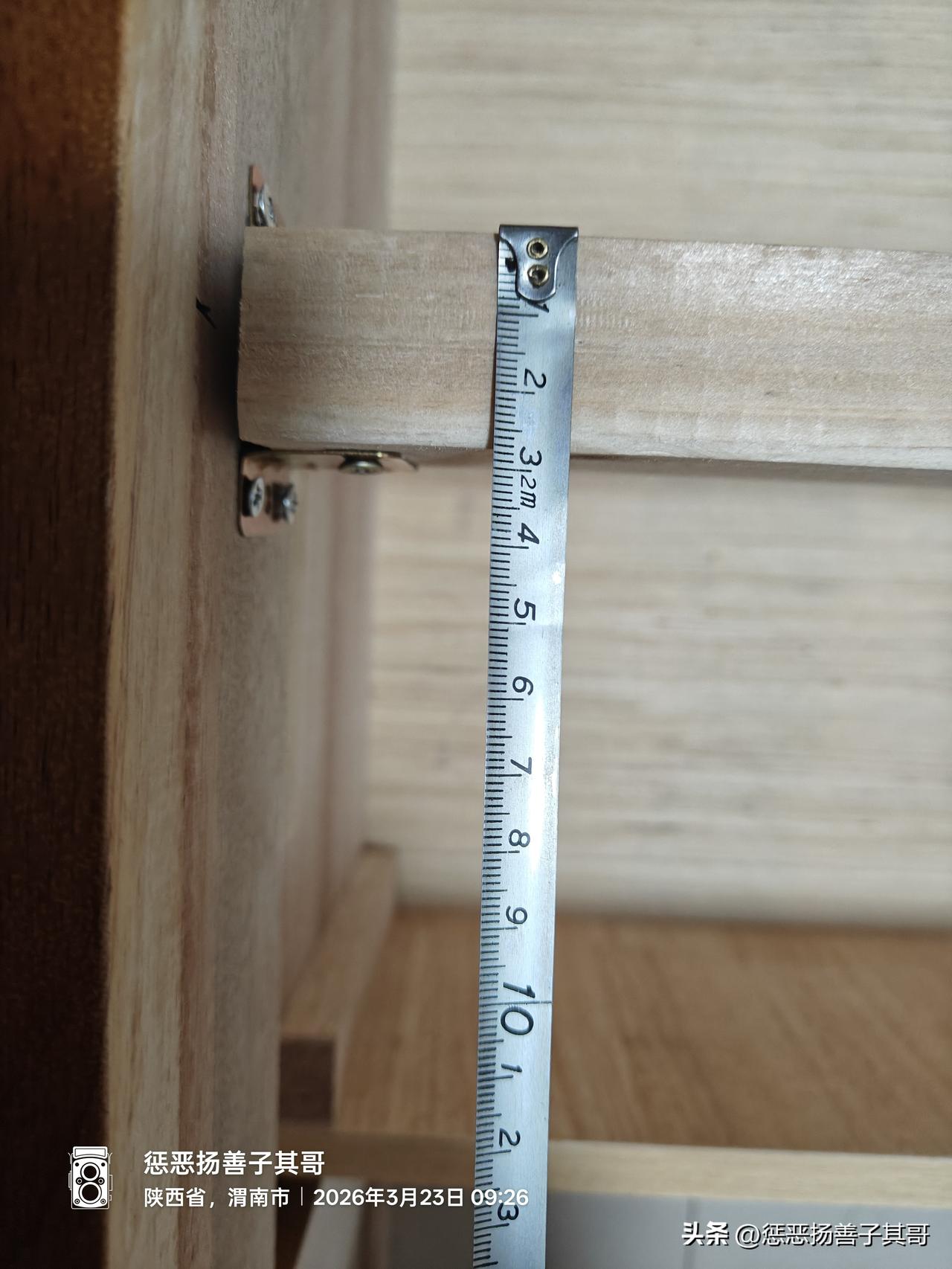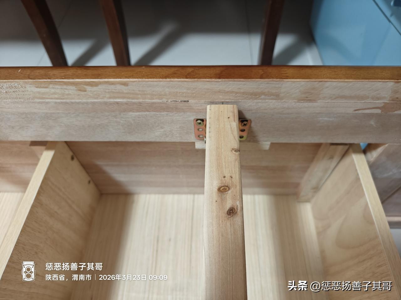 3.床的四个角除了8个锁扣螺丝连接,还有配的四个铁皮角铁,铁皮角铁也很薄(2毫米左右)。