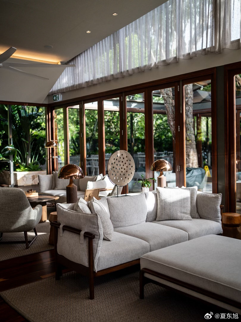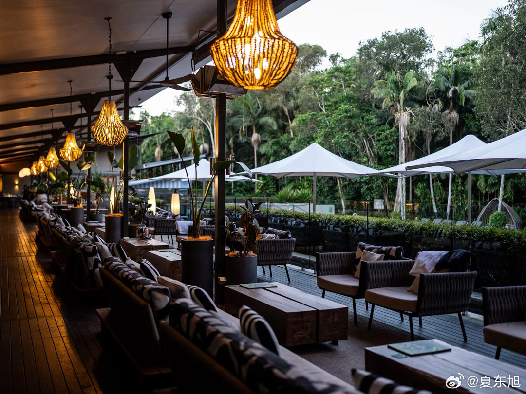 推门而入,原木与亚麻的温润气息扑面而来,套房前后双露台将雨林框成流动的画。没有繁复装饰,只有光影与绿意漫入室内,风穿过枝叶,带来远处海岸的咸湿气息,边界在此消融,人居于自然,而非凌驾其上。晨间在露台听鸟鸣,午后蜷坐看书,傍晚看落日染绿树冠,时间不再被刻度绑架,只随光影缓缓流淌。