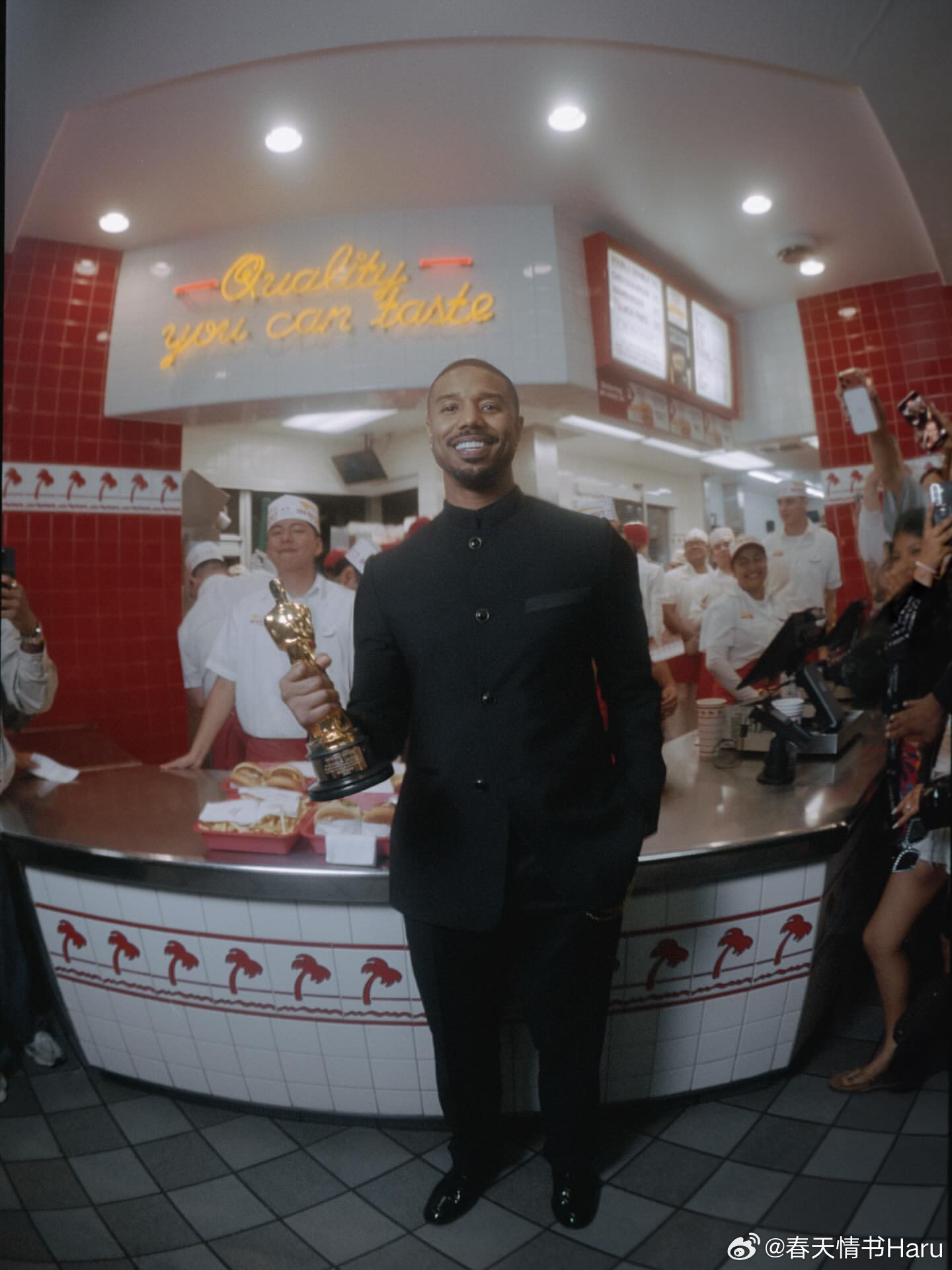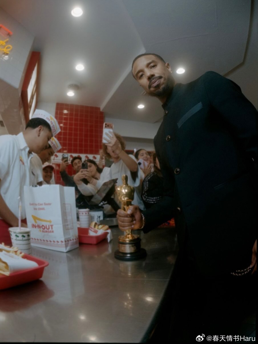 摄影师Leovolcy在In-N-Out给奥斯卡新科影帝迈克尔·B·乔丹拍摄的一